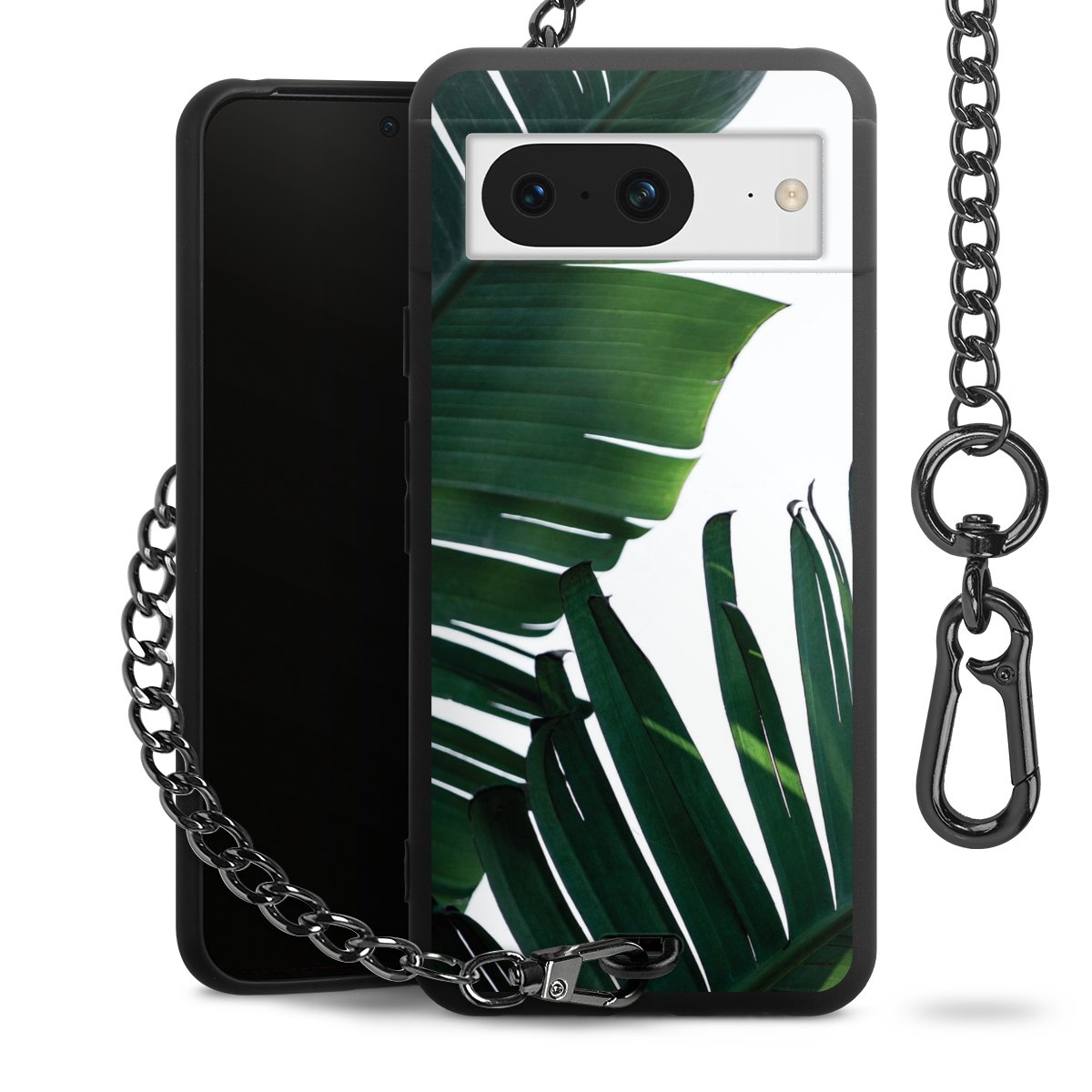 • Mattschwarze Handyhülle mit Metallkette