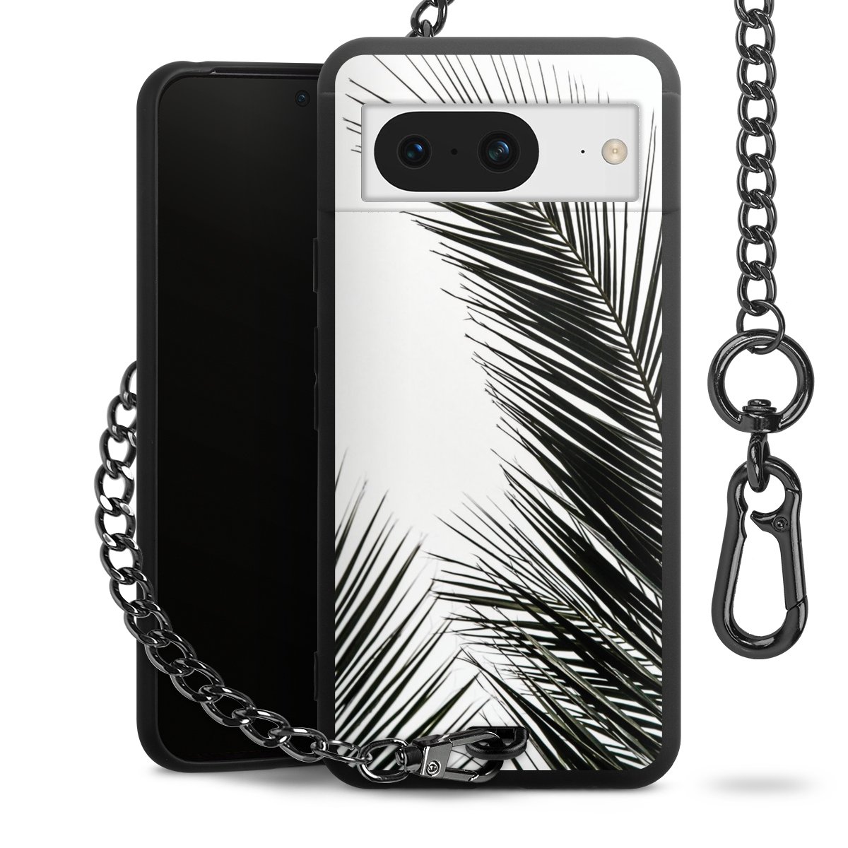 • Mattschwarze Handyhülle mit Metallkette