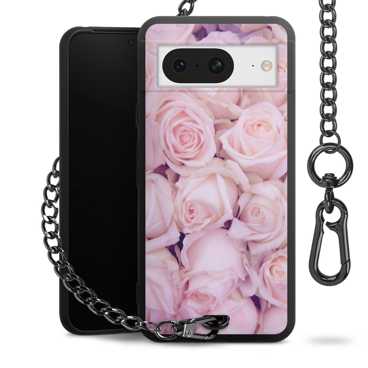 - Mattschwarze Handyhülle mit Metallkette