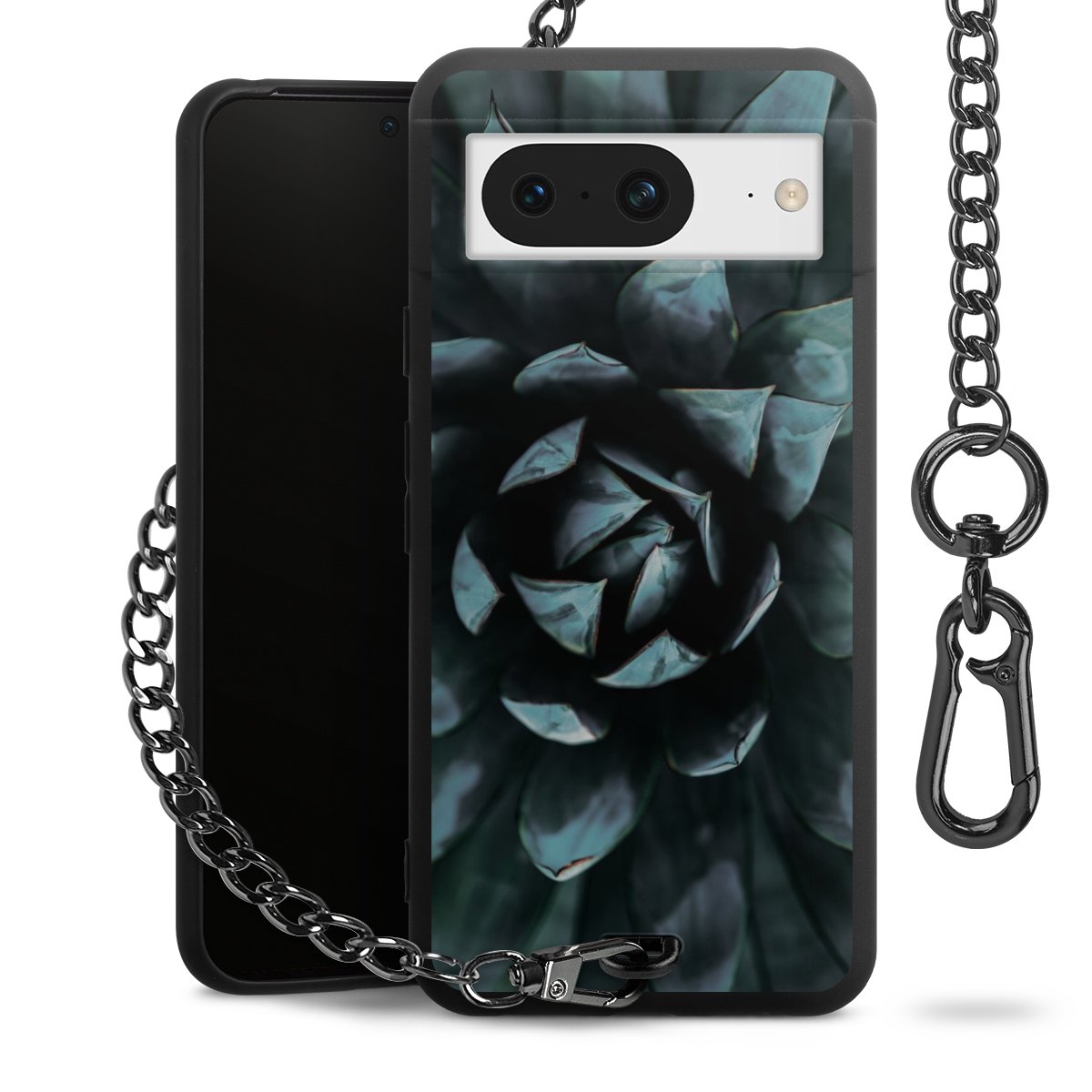 - Mattschwarze Handyhülle mit Metallkette