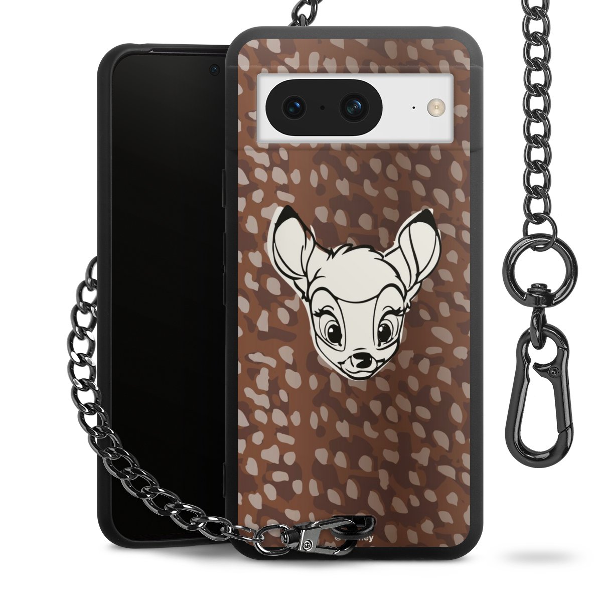 Die Handyhülle verfügt über eine mittig am unteren Rand platzierte Öse, an der die Metallkette stabil befestigt ist. Bestelle die Hülle einfach für Dein Smartphone-Modell, dann passt sie wie angegossen und Du brauchst sie bloß einmal anzudrücken. Handy in die Tasche, Karabiner an den Hosenbund – schon kann die Party starten.
