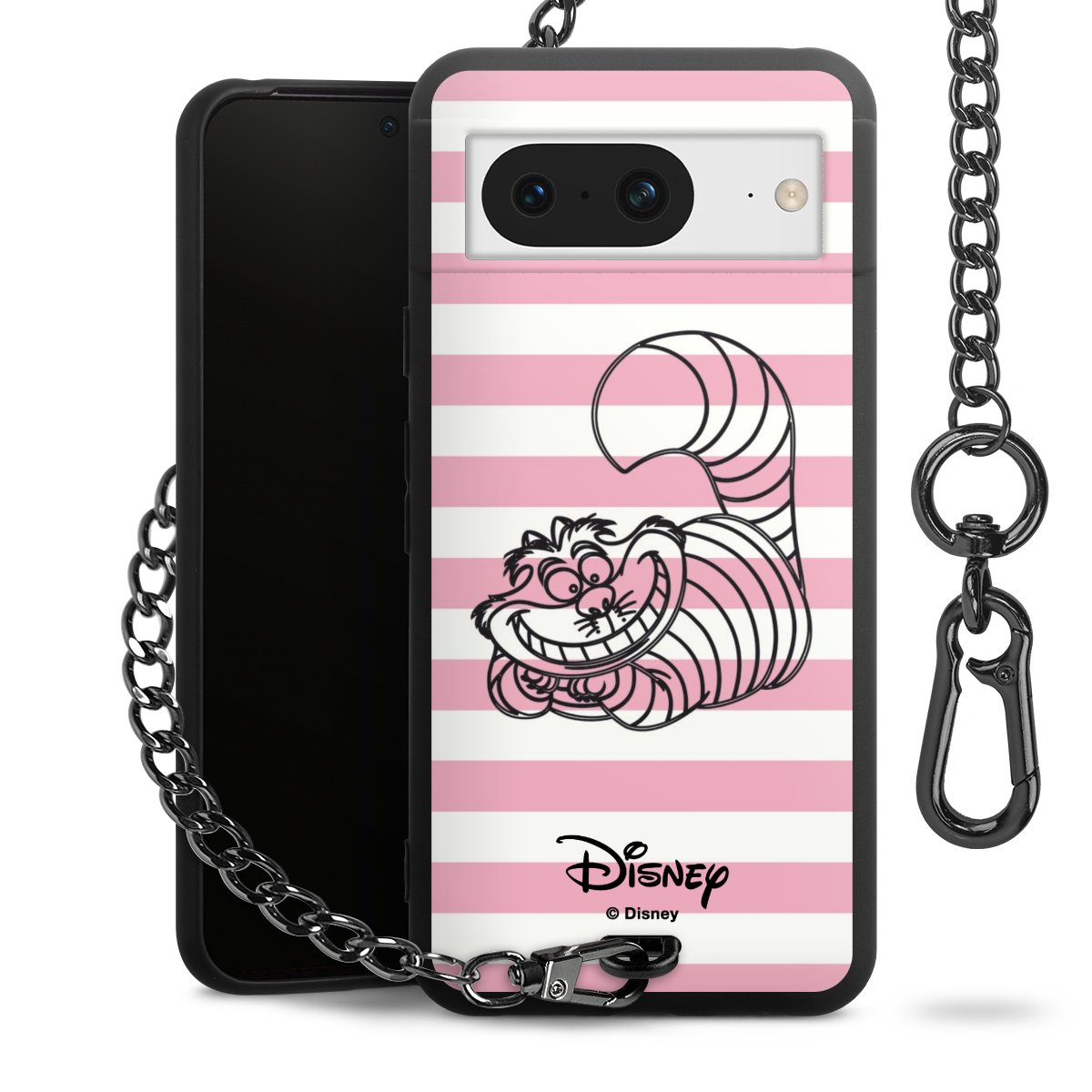 Die mattschwarze Silikon-Handyhülle besteht aus robustem TPU (thermoplastisches Polyurethan). Sie ist flexibel und schützt Dein Smartphone vor Stößen und Kratzern. Die Kette sowie der Karabinerhaken sind aus Metall in Gunmetal-Optik gefertigt. Für dieses Produkt kommen ausschließlich TÜV-geprüfte Materialien zum Einsatz.