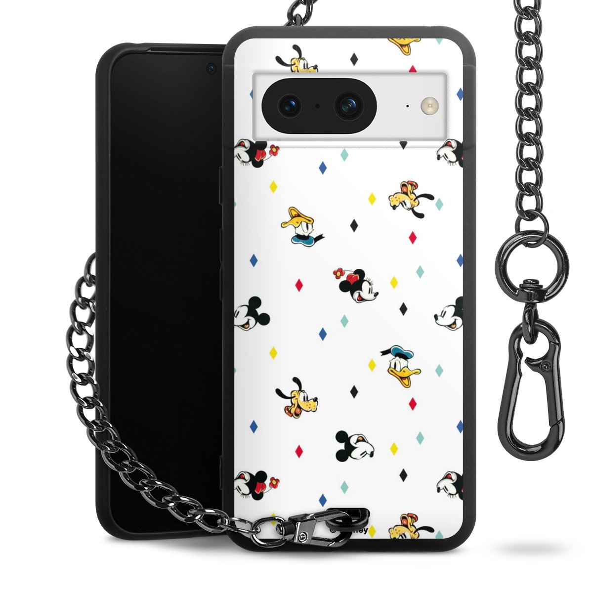 • Mattschwarze Handyhülle mit Metallkette