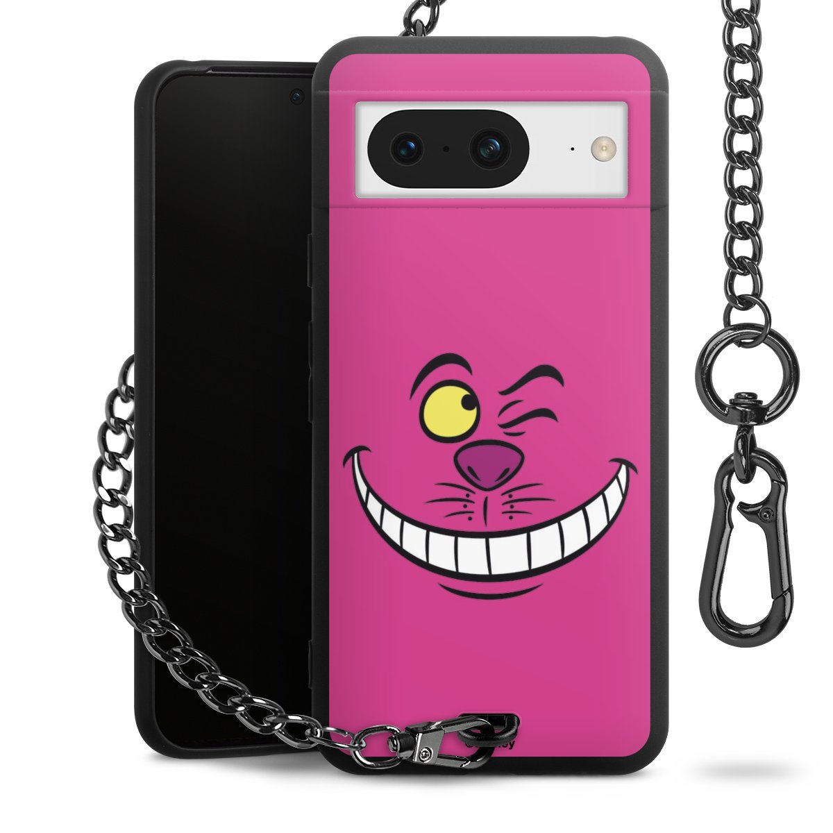 Die mattschwarze Silikon-Handyhülle besteht aus robustem TPU (thermoplastisches Polyurethan). Sie ist flexibel und schützt Dein Smartphone vor Stößen und Kratzern. Die Kette sowie der Karabinerhaken sind aus Metall in Gunmetal-Optik gefertigt. Für dieses Produkt kommen ausschließlich TÜV-geprüfte Materialien zum Einsatz.