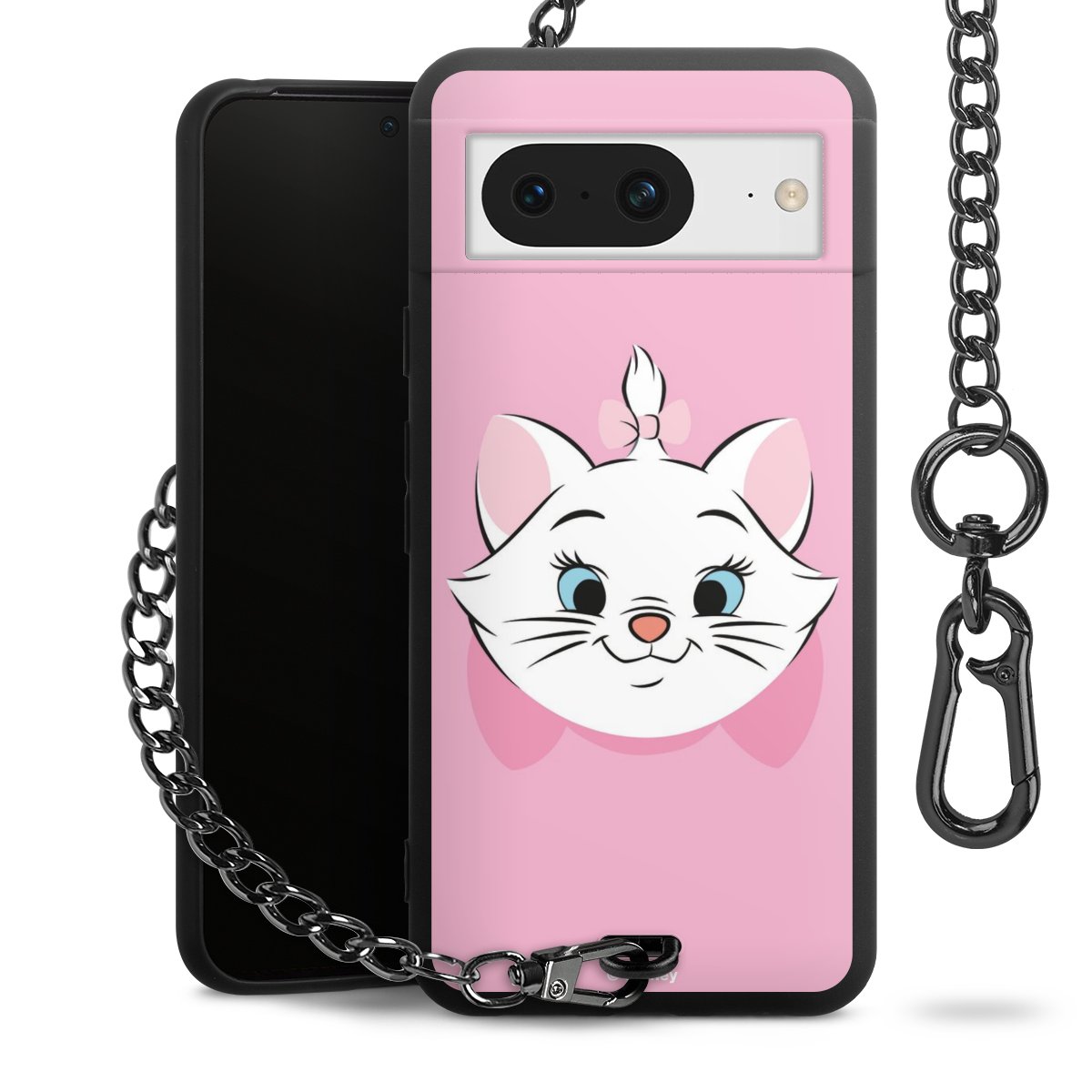 • Mattschwarze Handyhülle mit Metallkette