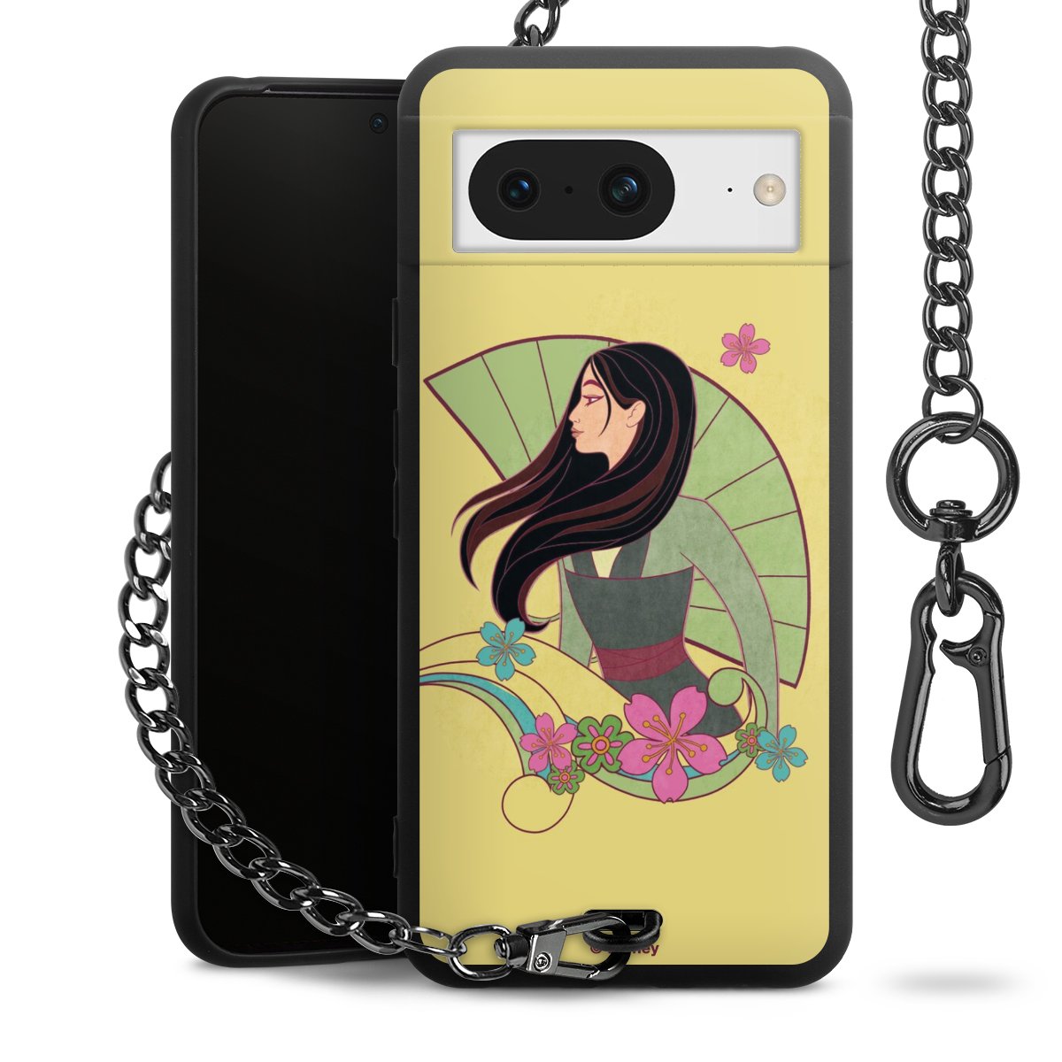 Die mattschwarze Silikon-Handyhülle besteht aus robustem TPU (thermoplastisches Polyurethan). Sie ist flexibel und schützt Dein Smartphone vor Stößen und Kratzern. Die Kette sowie der Karabinerhaken sind aus Metall in Gunmetal-Optik gefertigt. Für dieses Produkt kommen ausschließlich TÜV-geprüfte Materialien zum Einsatz.