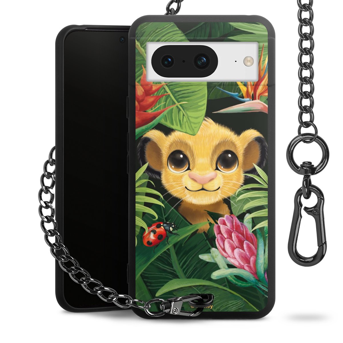 Die Handyhülle verfügt über eine mittig am unteren Rand platzierte Öse, an der die Metallkette stabil befestigt ist. Bestelle die Hülle einfach für Dein Smartphone-Modell, dann passt sie wie angegossen und Du brauchst sie bloß einmal anzudrücken. Handy in die Tasche, Karabiner an den Hosenbund – schon kann die Party starten.