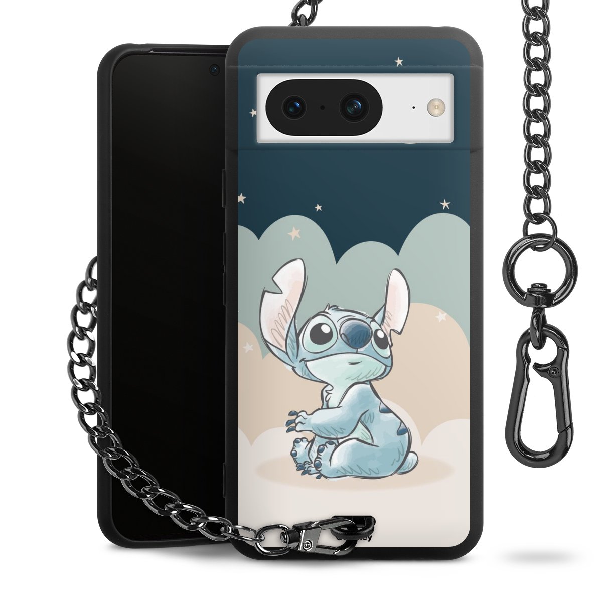 Die Handyhülle verfügt über eine mittig am unteren Rand platzierte Öse, an der die Metallkette stabil befestigt ist. Bestelle die Hülle einfach für Dein Smartphone-Modell, dann passt sie wie angegossen und Du brauchst sie bloß einmal anzudrücken. Handy in die Tasche, Karabiner an den Hosenbund – schon kann die Party starten.