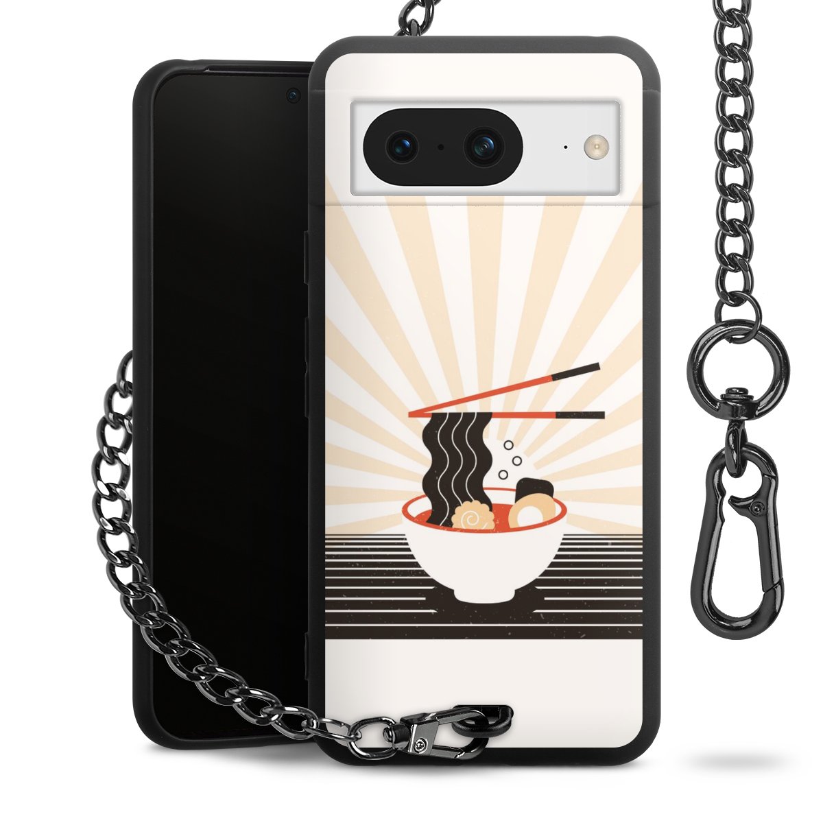 • Mattschwarze Handyhülle mit Metallkette