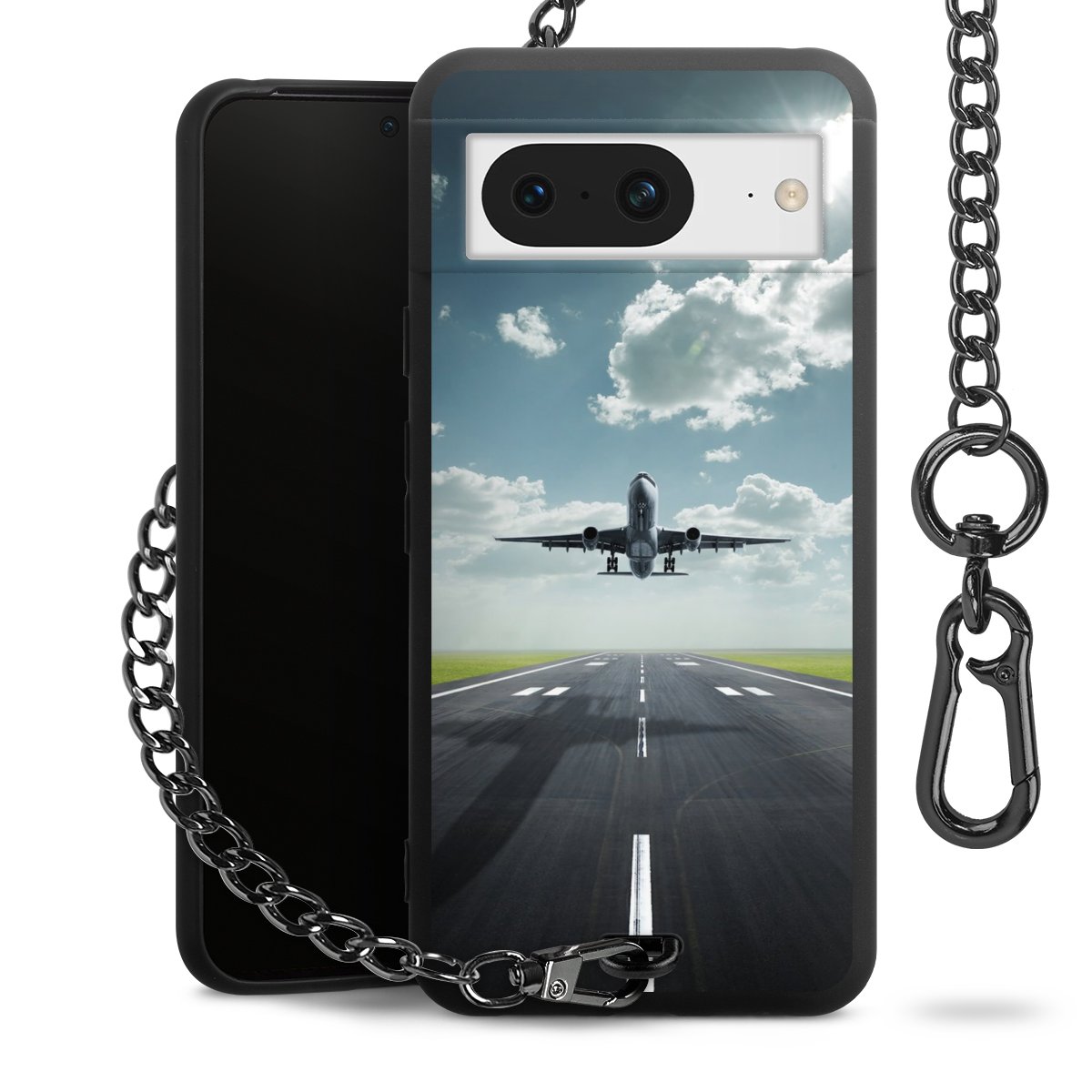 - Mattschwarze Handyhülle mit Metallkette