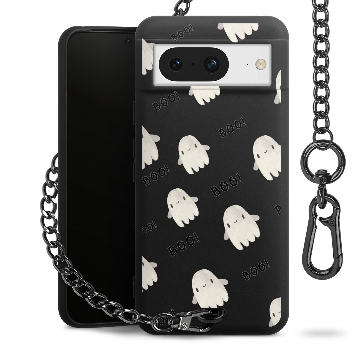 • Mattschwarze Handyhülle mit Metallkette