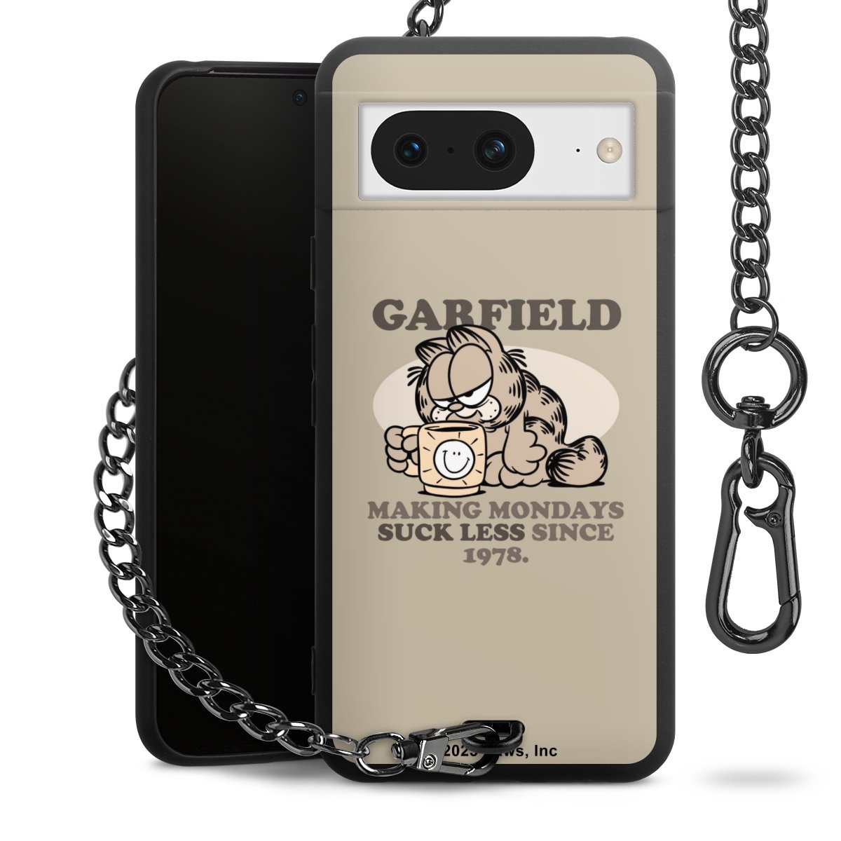 Die mattschwarze Silikon-Handyhülle besteht aus robustem TPU (thermoplastisches Polyurethan). Sie ist flexibel und schützt Dein Smartphone vor Stößen und Kratzern. Die Kette sowie der Karabinerhaken sind aus Metall in Gunmetal-Optik gefertigt. Für dieses Produkt kommen ausschließlich TÜV-geprüfte Materialien zum Einsatz.