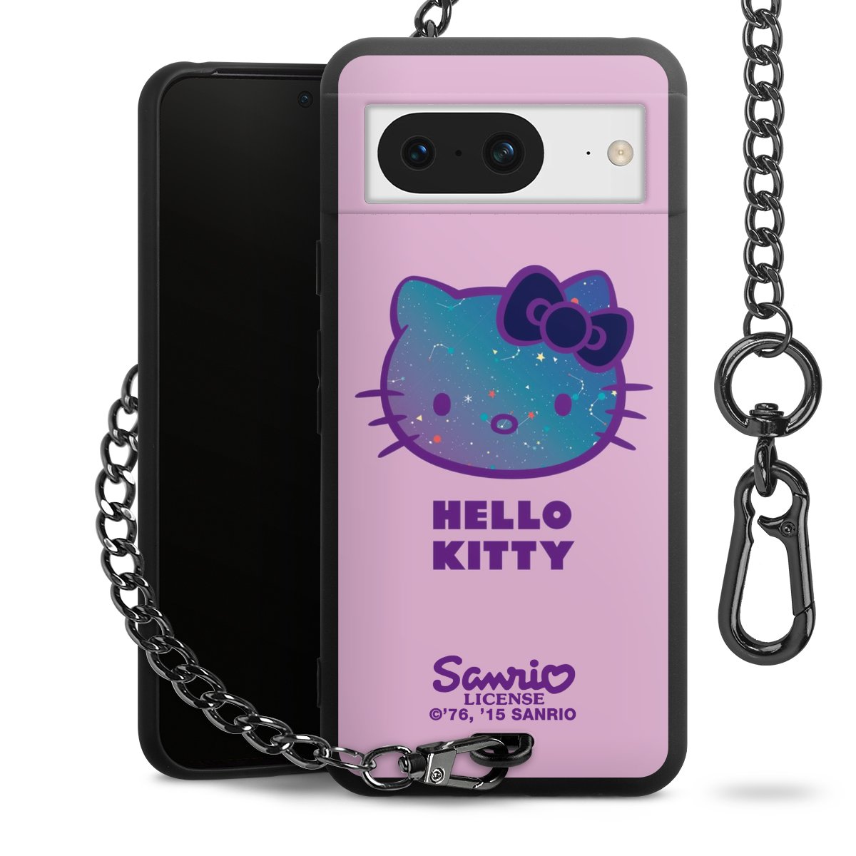 Die Handyhülle verfügt über eine mittig am unteren Rand platzierte Öse, an der die Metallkette stabil befestigt ist. Bestelle die Hülle einfach für Dein Smartphone-Modell, dann passt sie wie angegossen und Du brauchst sie bloß einmal anzudrücken. Handy in die Tasche, Karabiner an den Hosenbund – schon kann die Party starten.