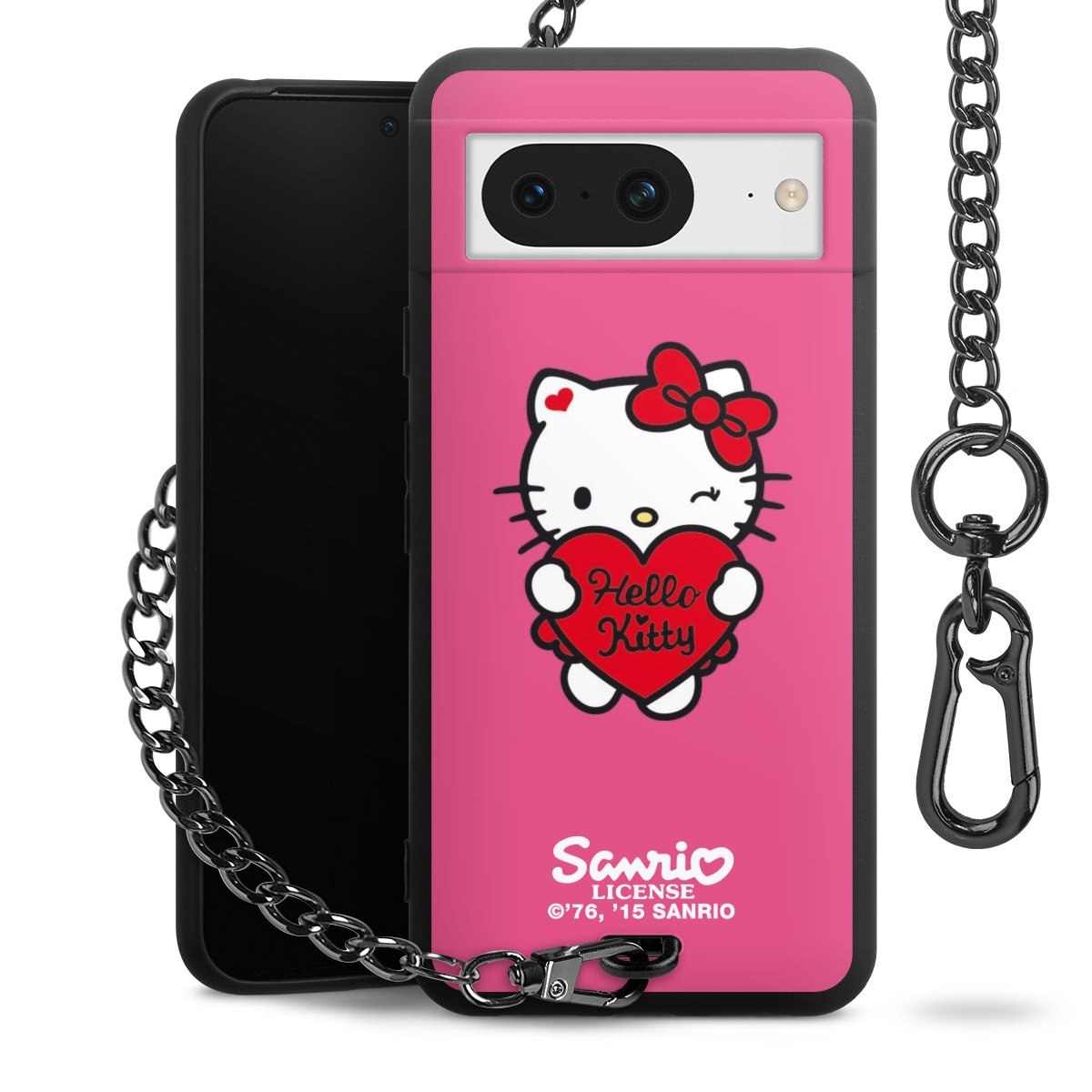 Die mattschwarze Silikon-Handyhülle besteht aus robustem TPU (thermoplastisches Polyurethan). Sie ist flexibel und schützt Dein Smartphone vor Stößen und Kratzern. Die Kette sowie der Karabinerhaken sind aus Metall in Gunmetal-Optik gefertigt. Für dieses Produkt kommen ausschließlich TÜV-geprüfte Materialien zum Einsatz.
