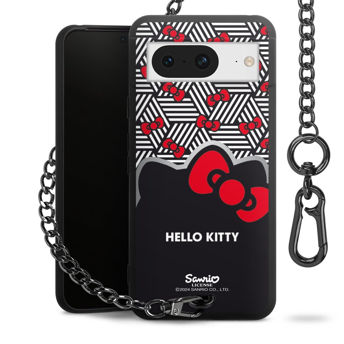 Die mattschwarze Silikon-Handyhülle besteht aus robustem TPU (thermoplastisches Polyurethan). Sie ist flexibel und schützt Dein Smartphone vor Stößen und Kratzern. Die Kette sowie der Karabinerhaken sind aus Metall in Gunmetal-Optik gefertigt. Für dieses Produkt kommen ausschließlich TÜV-geprüfte Materialien zum Einsatz.