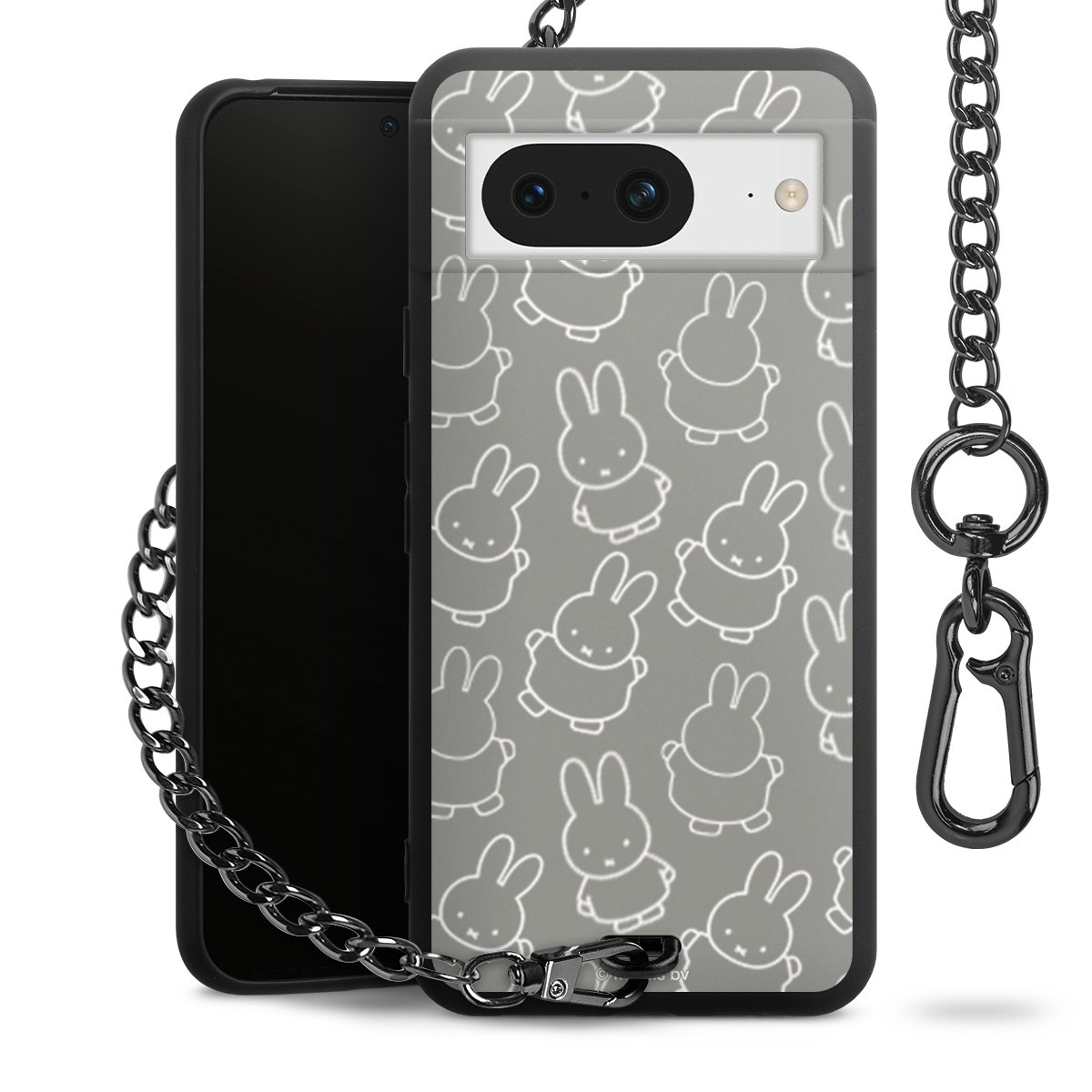 Die mattschwarze Silikon-Handyhülle besteht aus robustem TPU (thermoplastisches Polyurethan). Sie ist flexibel und schützt Dein Smartphone vor Stößen und Kratzern. Die Kette sowie der Karabinerhaken sind aus Metall in Gunmetal-Optik gefertigt. Für dieses Produkt kommen ausschließlich TÜV-geprüfte Materialien zum Einsatz.