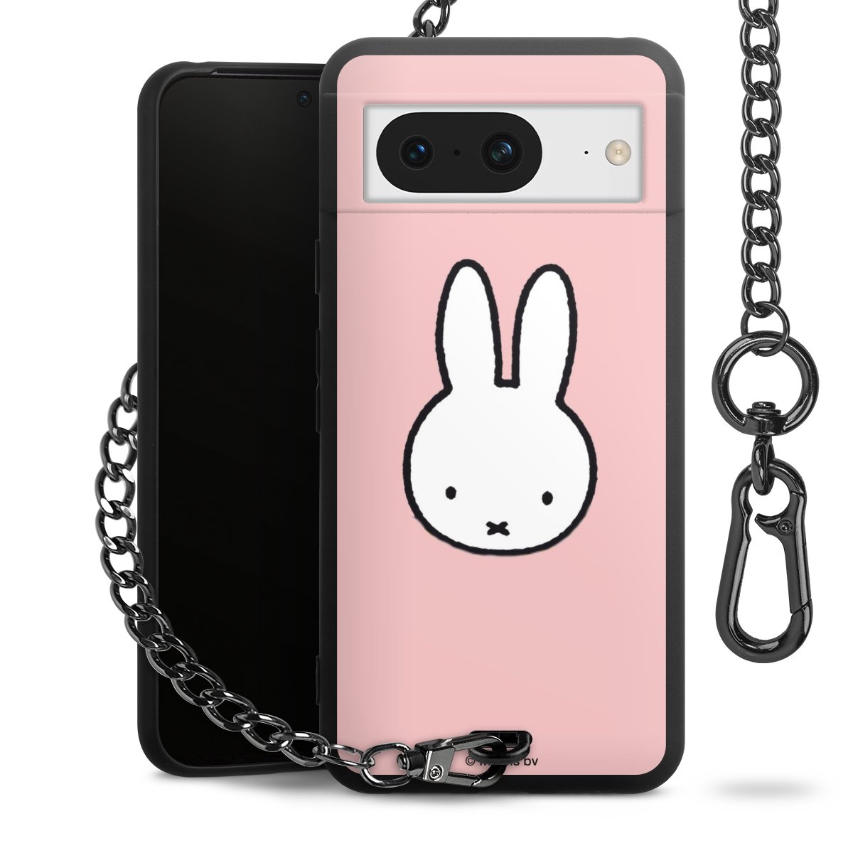 Die mattschwarze Silikon-Handyhülle besteht aus robustem TPU (thermoplastisches Polyurethan). Sie ist flexibel und schützt Dein Smartphone vor Stößen und Kratzern. Die Kette sowie der Karabinerhaken sind aus Metall in Gunmetal-Optik gefertigt. Für dieses Produkt kommen ausschließlich TÜV-geprüfte Materialien zum Einsatz.
