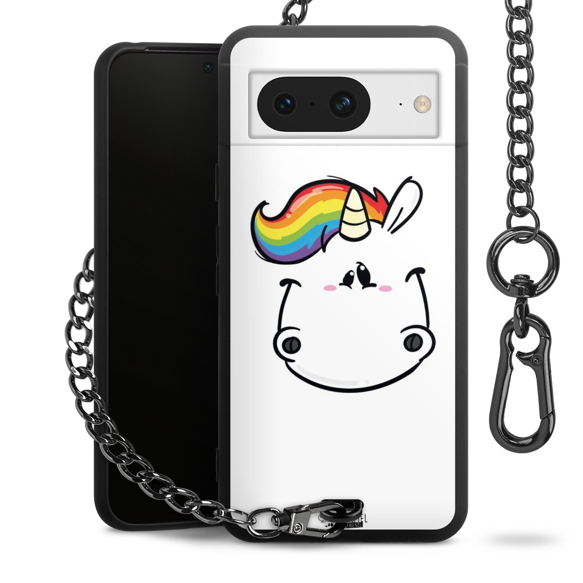 Die mattschwarze Silikon-Handyhülle besteht aus robustem TPU (thermoplastisches Polyurethan). Sie ist flexibel und schützt Dein Smartphone vor Stößen und Kratzern. Die Kette sowie der Karabinerhaken sind aus Metall in Gunmetal-Optik gefertigt. Für dieses Produkt kommen ausschließlich TÜV-geprüfte Materialien zum Einsatz.