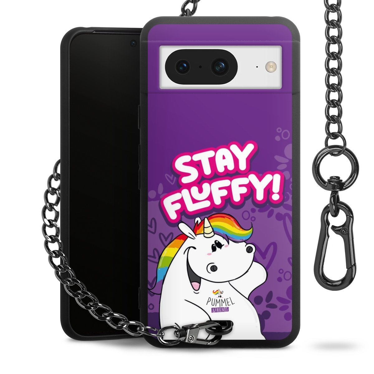 Die mattschwarze Silikon-Handyhülle besteht aus robustem TPU (thermoplastisches Polyurethan). Sie ist flexibel und schützt Dein Smartphone vor Stößen und Kratzern. Die Kette sowie der Karabinerhaken sind aus Metall in Gunmetal-Optik gefertigt. Für dieses Produkt kommen ausschließlich TÜV-geprüfte Materialien zum Einsatz.