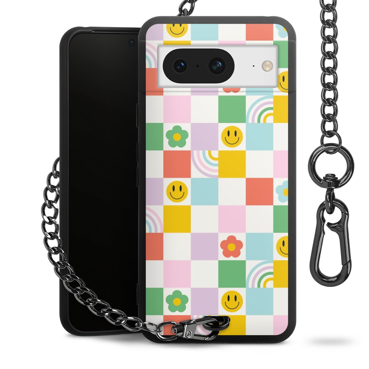 Die mattschwarze Silikon-Handyhülle besteht aus robustem TPU (thermoplastisches Polyurethan). Sie ist flexibel und schützt Dein Smartphone vor Stößen und Kratzern. Die Kette sowie der Karabinerhaken sind aus Metall in Gunmetal-Optik gefertigt. Für dieses Produkt kommen ausschließlich TÜV-geprüfte Materialien zum Einsatz.