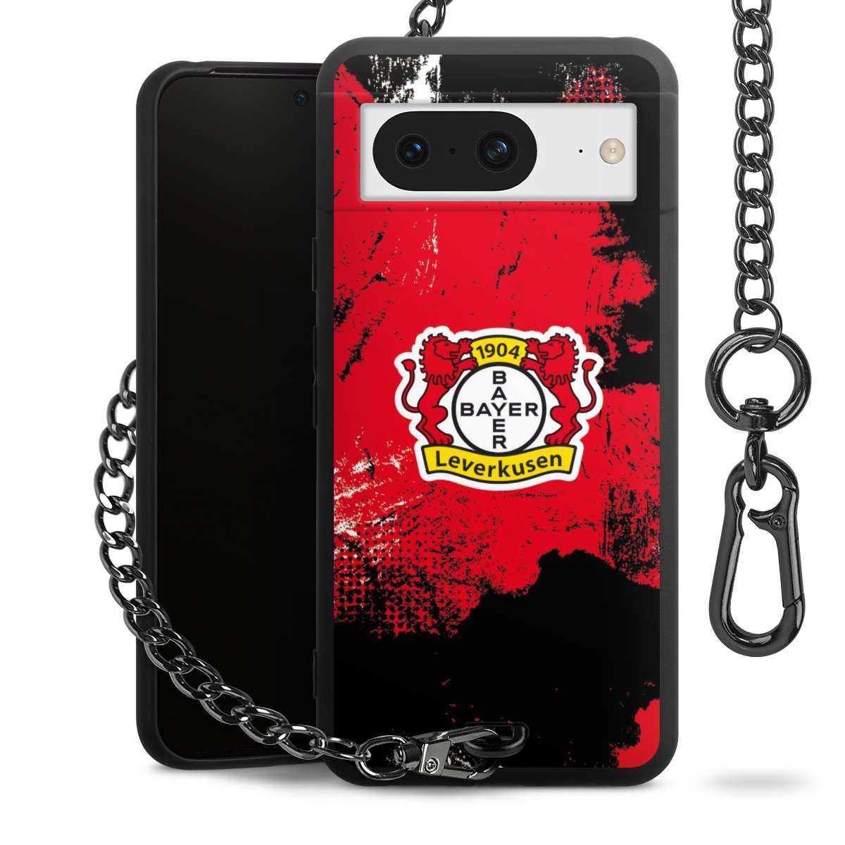 Die mattschwarze Silikon-Handyhülle besteht aus robustem TPU (thermoplastisches Polyurethan). Sie ist flexibel und schützt Dein Smartphone vor Stößen und Kratzern. Die Kette sowie der Karabinerhaken sind aus Metall in Gunmetal-Optik gefertigt. Für dieses Produkt kommen ausschließlich TÜV-geprüfte Materialien zum Einsatz.