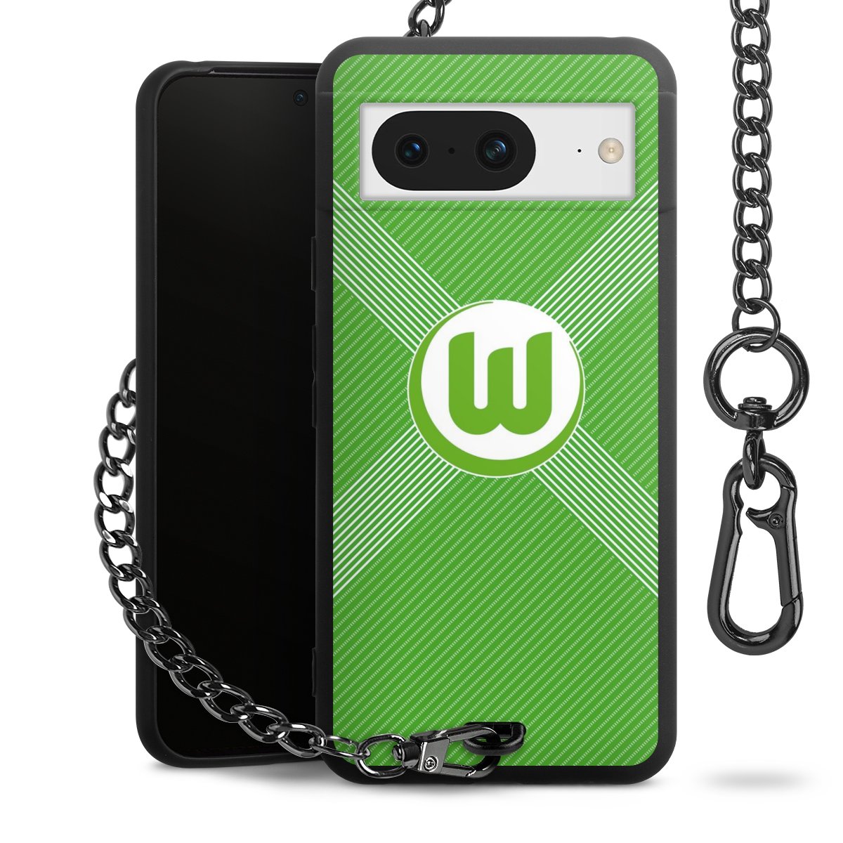 Die mattschwarze Silikon-Handyhülle besteht aus robustem TPU (thermoplastisches Polyurethan). Sie ist flexibel und schützt Dein Smartphone vor Stößen und Kratzern. Die Kette sowie der Karabinerhaken sind aus Metall in Gunmetal-Optik gefertigt. Für dieses Produkt kommen ausschließlich TÜV-geprüfte Materialien zum Einsatz.