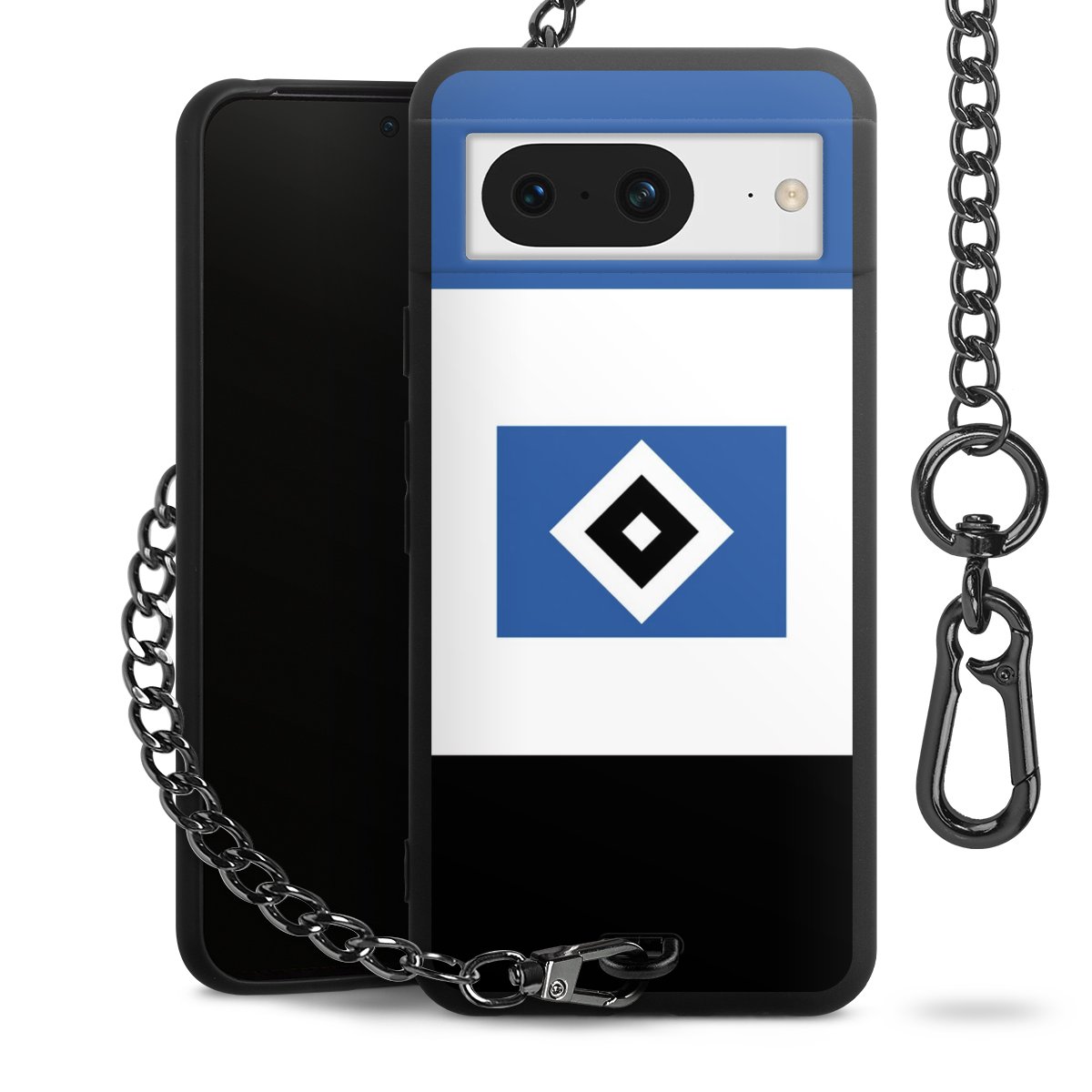 Die mattschwarze Silikon-Handyhülle besteht aus robustem TPU (thermoplastisches Polyurethan). Sie ist flexibel und schützt Dein Smartphone vor Stößen und Kratzern. Die Kette sowie der Karabinerhaken sind aus Metall in Gunmetal-Optik gefertigt. Für dieses Produkt kommen ausschließlich TÜV-geprüfte Materialien zum Einsatz.