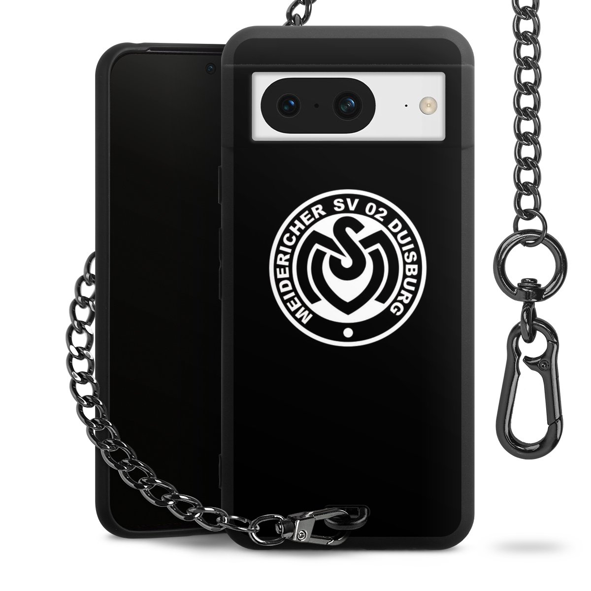 Die mattschwarze Silikon-Handyhülle besteht aus robustem TPU (thermoplastisches Polyurethan). Sie ist flexibel und schützt Dein Smartphone vor Stößen und Kratzern. Die Kette sowie der Karabinerhaken sind aus Metall in Gunmetal-Optik gefertigt. Für dieses Produkt kommen ausschließlich TÜV-geprüfte Materialien zum Einsatz.