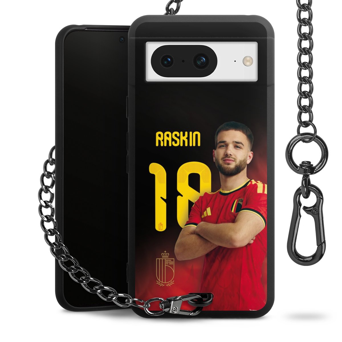 Die mattschwarze Silikon-Handyhülle besteht aus robustem TPU (thermoplastisches Polyurethan). Sie ist flexibel und schützt Dein Smartphone vor Stößen und Kratzern. Die Kette sowie der Karabinerhaken sind aus Metall in Gunmetal-Optik gefertigt. Für dieses Produkt kommen ausschließlich TÜV-geprüfte Materialien zum Einsatz.