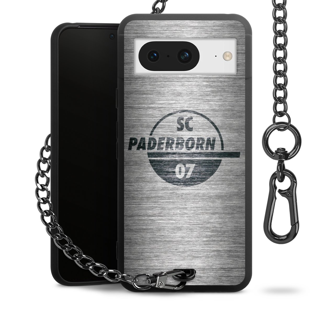 Die mattschwarze Silikon-Handyhülle besteht aus robustem TPU (thermoplastisches Polyurethan). Sie ist flexibel und schützt Dein Smartphone vor Stößen und Kratzern. Die Kette sowie der Karabinerhaken sind aus Metall in Gunmetal-Optik gefertigt. Für dieses Produkt kommen ausschließlich TÜV-geprüfte Materialien zum Einsatz.