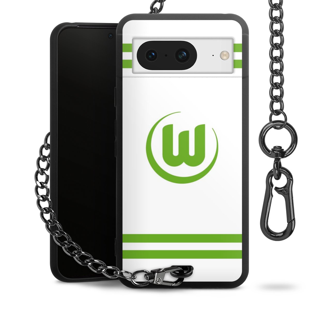 Die mattschwarze Silikon-Handyhülle besteht aus robustem TPU (thermoplastisches Polyurethan). Sie ist flexibel und schützt Dein Smartphone vor Stößen und Kratzern. Die Kette sowie der Karabinerhaken sind aus Metall in Gunmetal-Optik gefertigt. Für dieses Produkt kommen ausschließlich TÜV-geprüfte Materialien zum Einsatz.