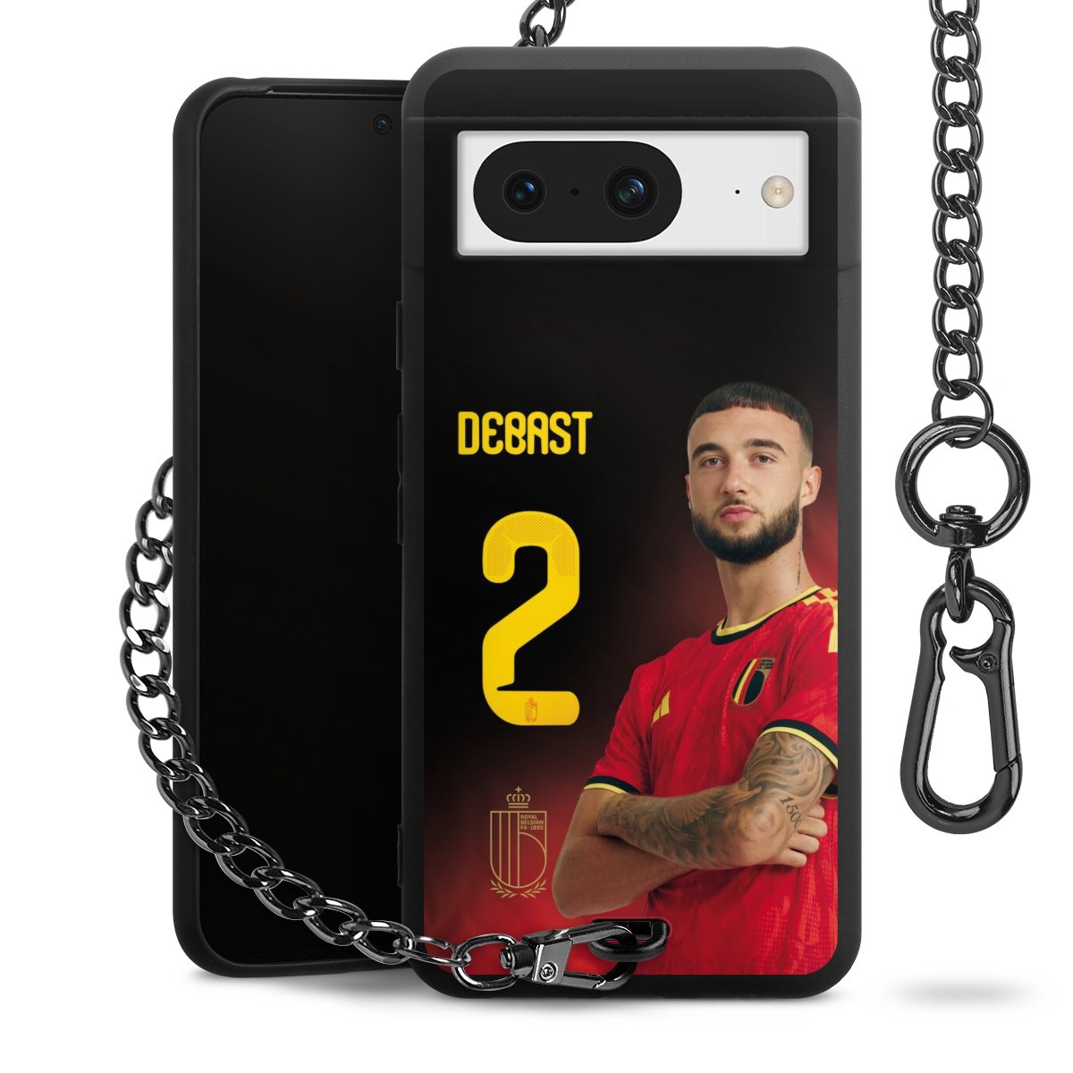 Ob im Alltag, beim Feiern mit Deinen Jungs oder auf Festivals – mit dem superpraktischen Belt Case steckst Du alle Sorgen um Diebstahl und Spider-App ganz entspannt in die Tasche. Es besteht aus einem coolen mattschwarzen Silikon Premium Case, dem Du ein individuelles Design verpassen kannst, und einer daran befestigten Kette in lässiger Gunmetal-Optik. Mit dem Karabiner auf der anderen Seite klickst Du die Kette mit einem Handgriff an Deine Gürtelschlaufe und schon ist Dein Smartphone sicher und stets griffbereit in der Hosentasche verstaut.