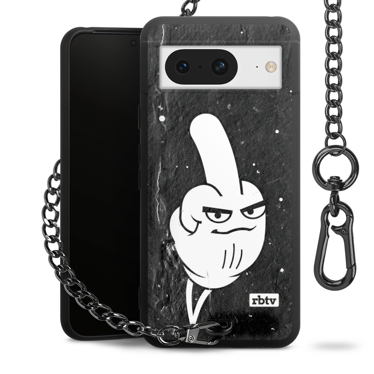Die mattschwarze Silikon-Handyhülle besteht aus robustem TPU (thermoplastisches Polyurethan). Sie ist flexibel und schützt Dein Smartphone vor Stößen und Kratzern. Die Kette sowie der Karabinerhaken sind aus Metall in Gunmetal-Optik gefertigt. Für dieses Produkt kommen ausschließlich TÜV-geprüfte Materialien zum Einsatz.