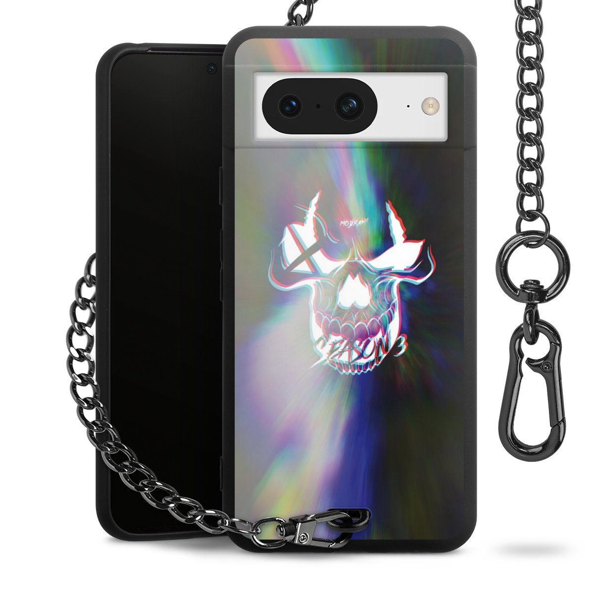 • Mattschwarze Handyhülle mit Metallkette