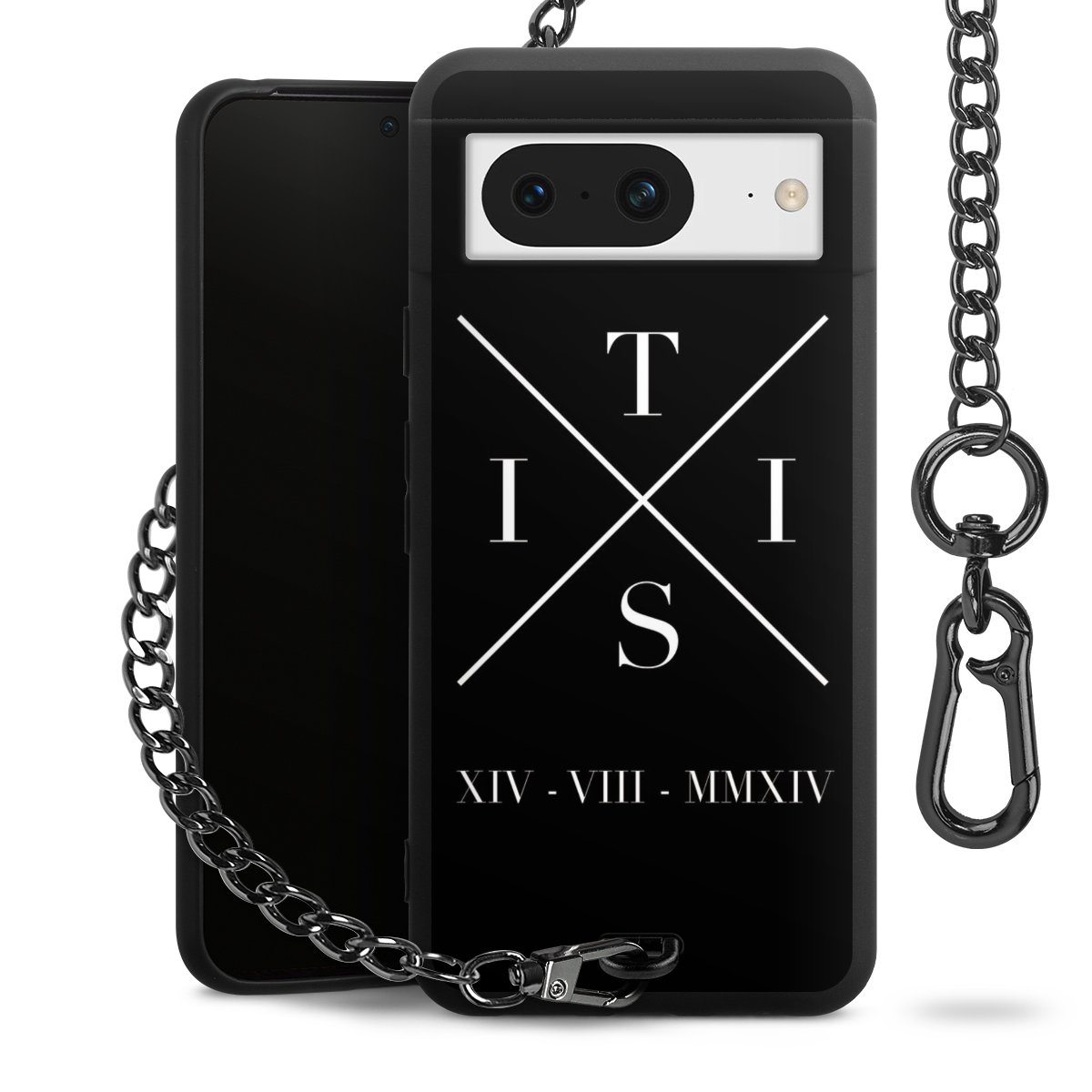 Die mattschwarze Silikon-Handyhülle besteht aus robustem TPU (thermoplastisches Polyurethan). Sie ist flexibel und schützt Dein Smartphone vor Stößen und Kratzern. Die Kette sowie der Karabinerhaken sind aus Metall in Gunmetal-Optik gefertigt. Für dieses Produkt kommen ausschließlich TÜV-geprüfte Materialien zum Einsatz.