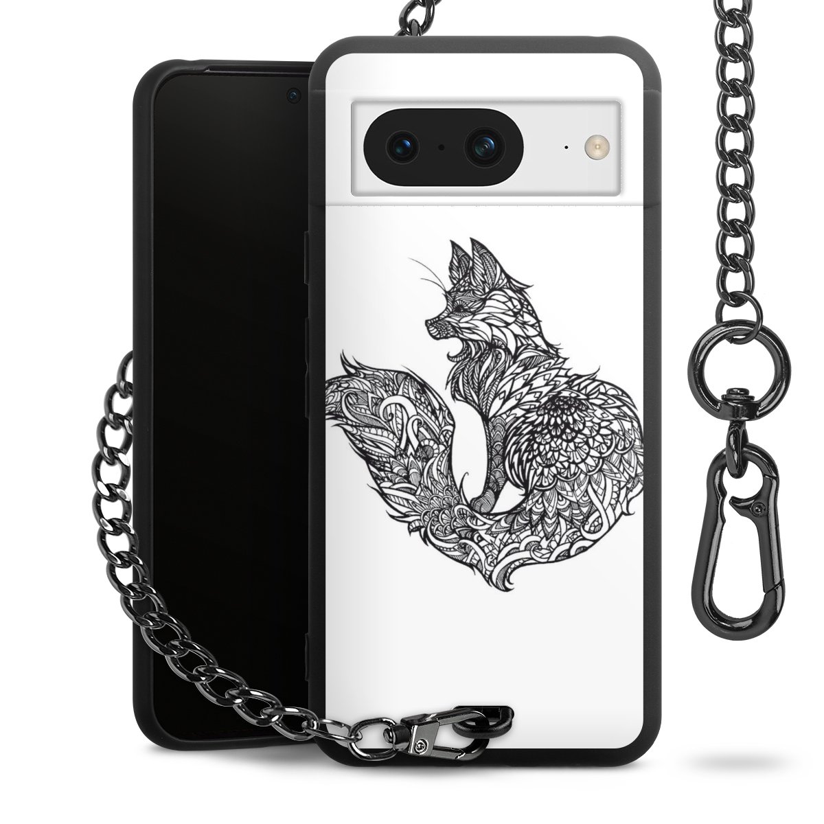 Die mattschwarze Silikon-Handyhülle besteht aus robustem TPU (thermoplastisches Polyurethan). Sie ist flexibel und schützt Dein Smartphone vor Stößen und Kratzern. Die Kette sowie der Karabinerhaken sind aus Metall in Gunmetal-Optik gefertigt. Für dieses Produkt kommen ausschließlich TÜV-geprüfte Materialien zum Einsatz.