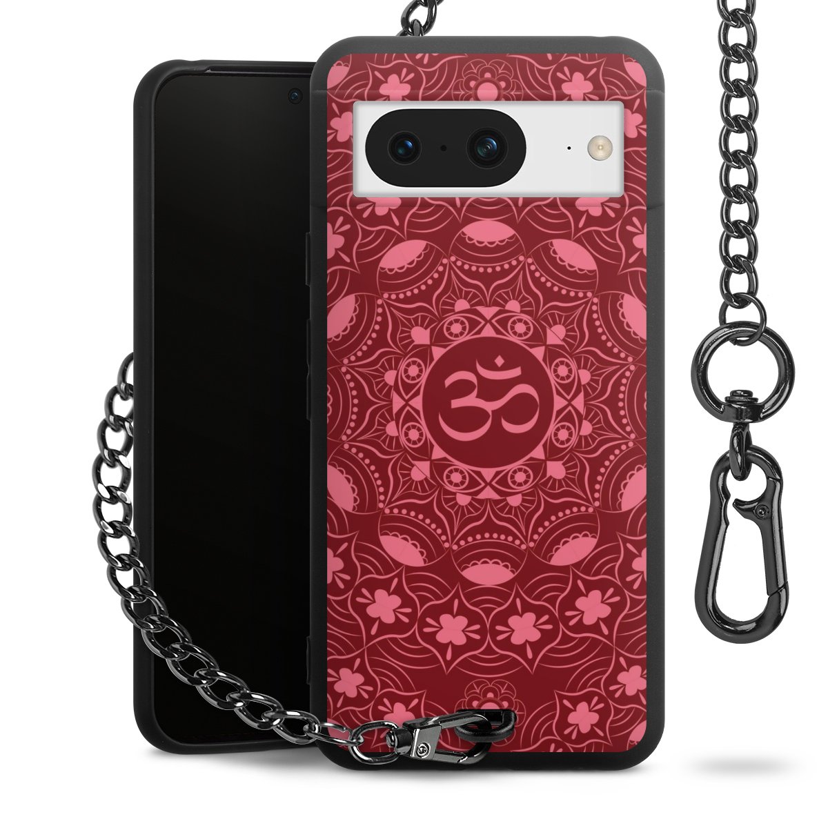 - Mattschwarze Handyhülle mit Metallkette