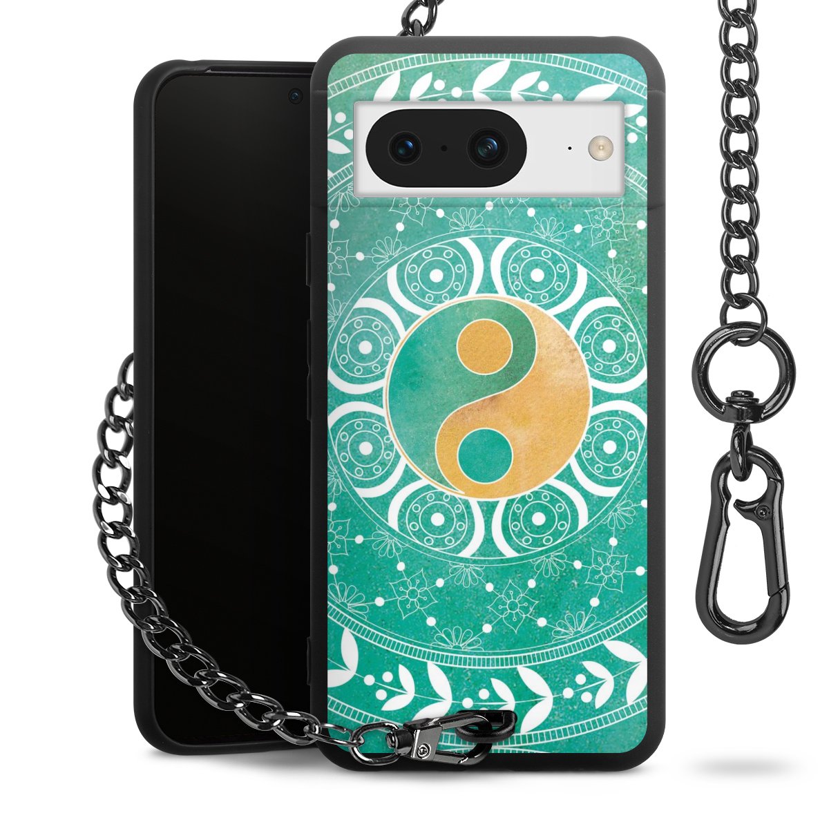 Die mattschwarze Silikon-Handyhülle besteht aus robustem TPU (thermoplastisches Polyurethan). Sie ist flexibel und schützt Dein Smartphone vor Stößen und Kratzern. Die Kette sowie der Karabinerhaken sind aus Metall in Gunmetal-Optik gefertigt. Für dieses Produkt kommen ausschließlich TÜV-geprüfte Materialien zum Einsatz.
