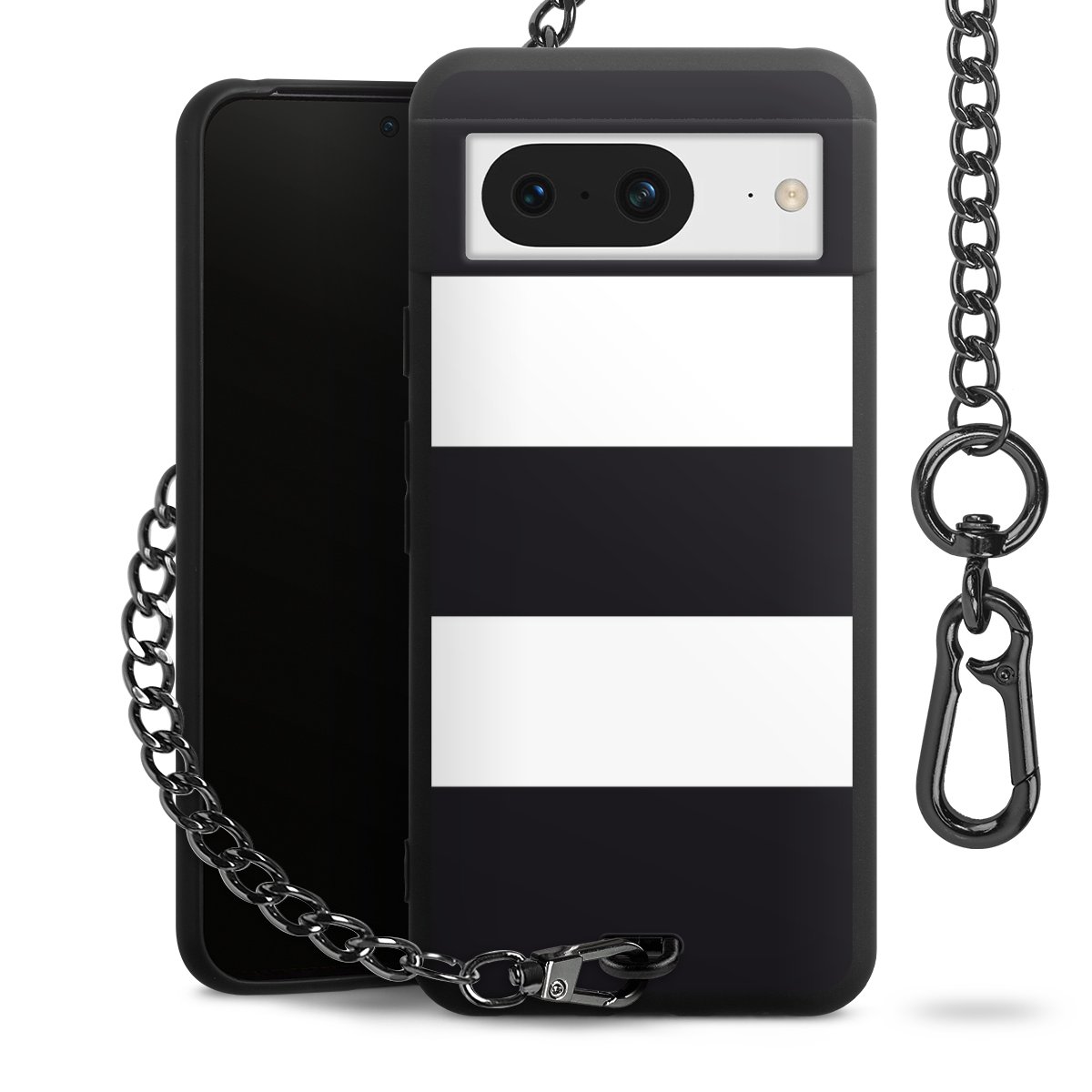 - Mattschwarze Handyhülle mit Metallkette