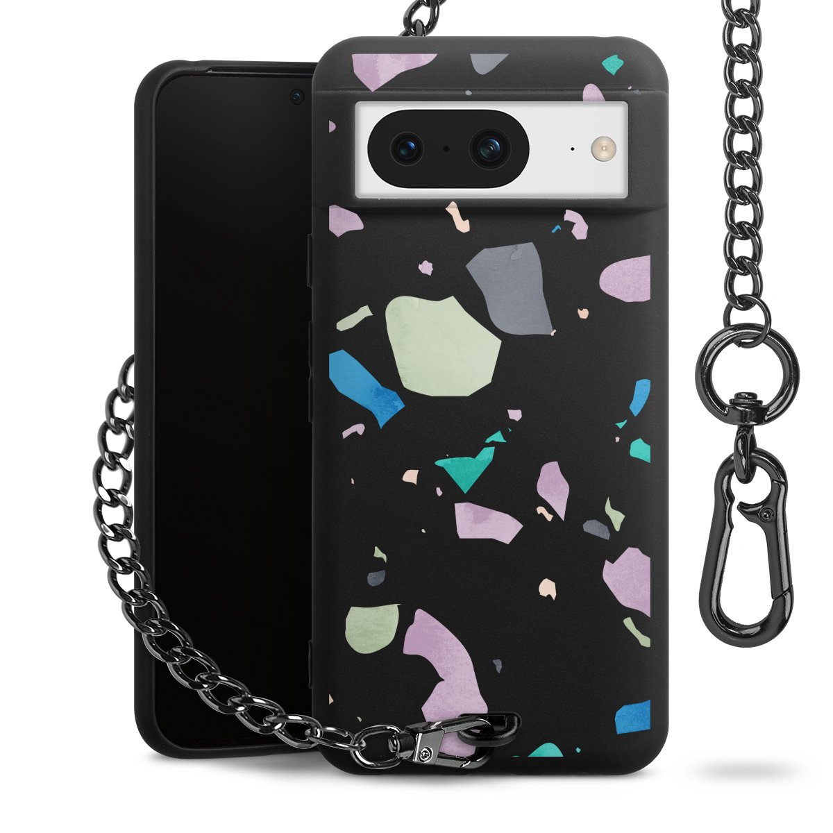 • Mattschwarze Handyhülle mit Metallkette