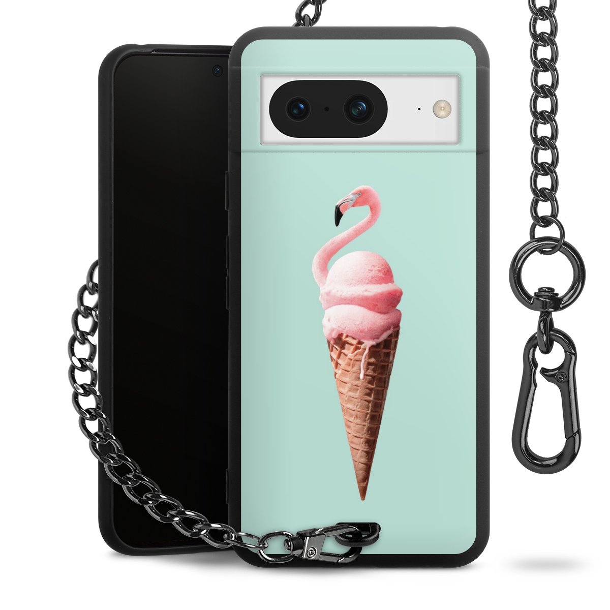 • Mattschwarze Handyhülle mit Metallkette