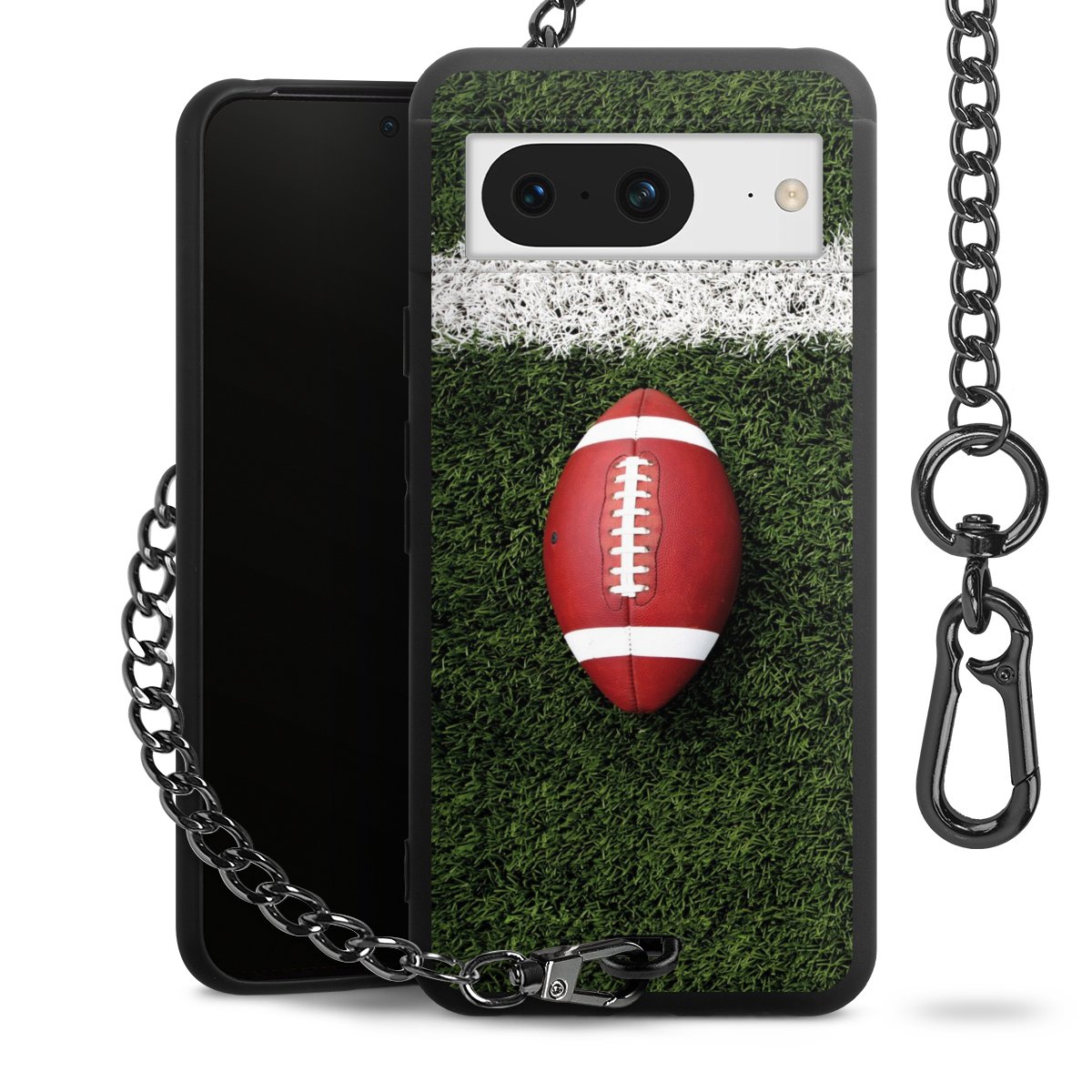- Mattschwarze Handyhülle mit Metallkette