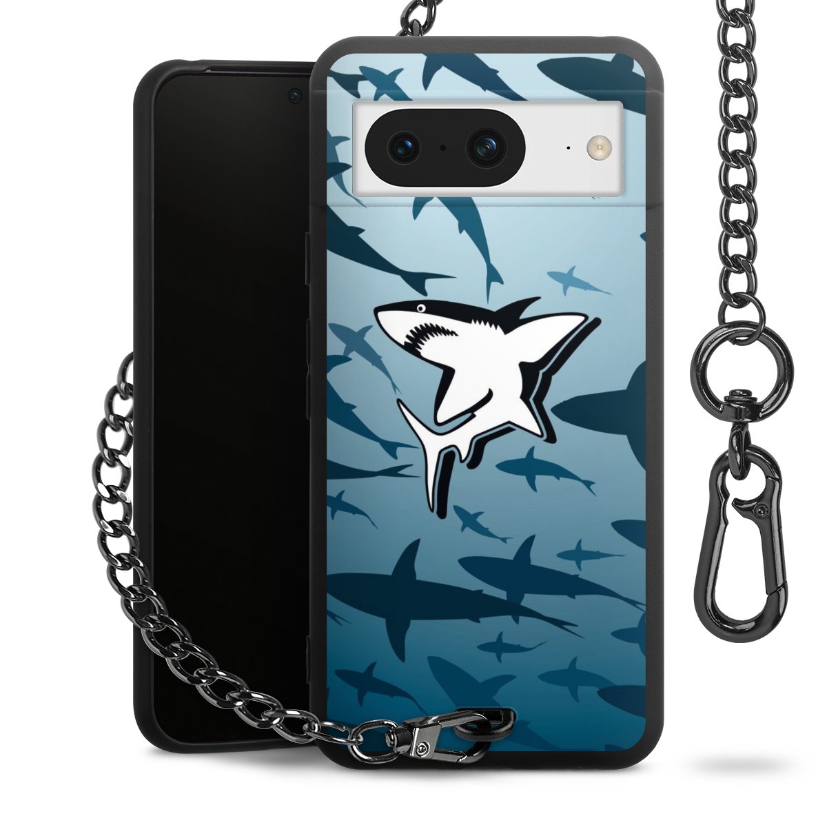 Die mattschwarze Silikon-Handyhülle besteht aus robustem TPU (thermoplastisches Polyurethan). Sie ist flexibel und schützt Dein Smartphone vor Stößen und Kratzern. Die Kette sowie der Karabinerhaken sind aus Metall in Gunmetal-Optik gefertigt. Für dieses Produkt kommen ausschließlich TÜV-geprüfte Materialien zum Einsatz.