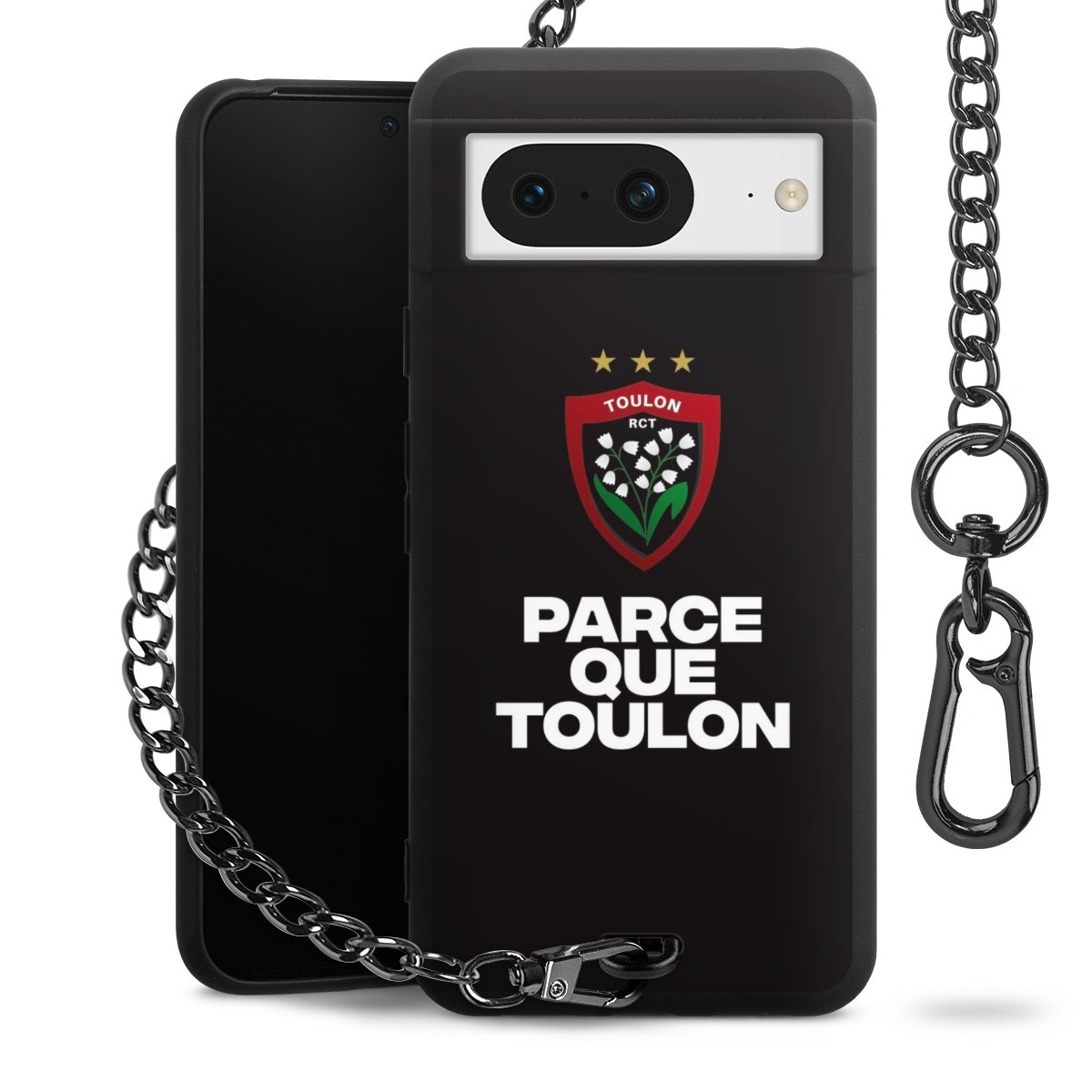 Die mattschwarze Silikon-Handyhülle besteht aus robustem TPU (thermoplastisches Polyurethan). Sie ist flexibel und schützt Dein Smartphone vor Stößen und Kratzern. Die Kette sowie der Karabinerhaken sind aus Metall in Gunmetal-Optik gefertigt. Für dieses Produkt kommen ausschließlich TÜV-geprüfte Materialien zum Einsatz.