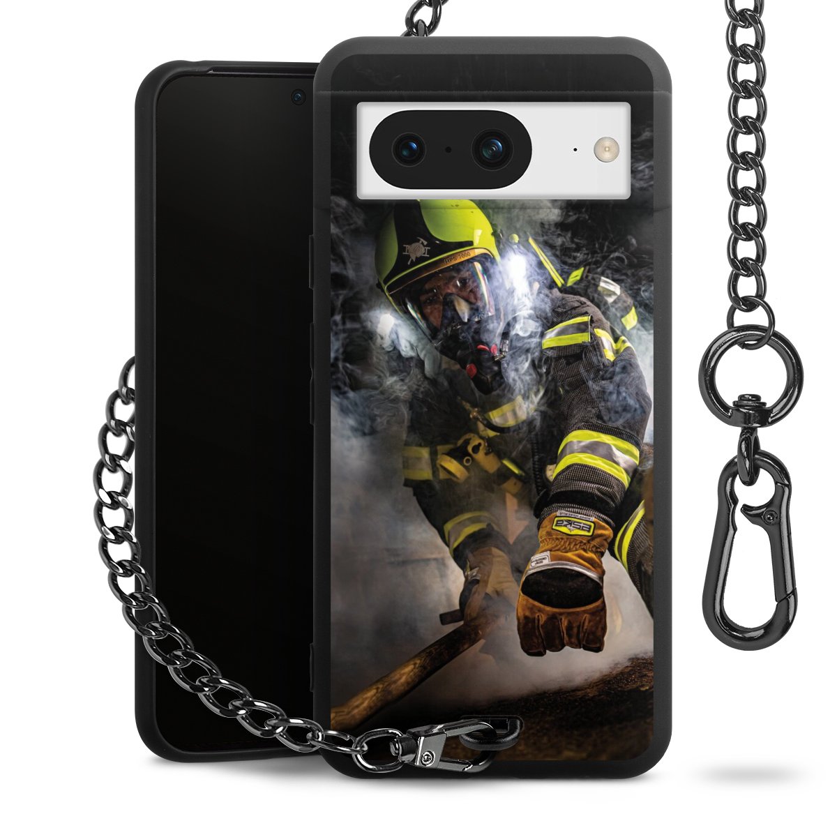Die mattschwarze Silikon-Handyhülle besteht aus robustem TPU (thermoplastisches Polyurethan). Sie ist flexibel und schützt Dein Smartphone vor Stößen und Kratzern. Die Kette sowie der Karabinerhaken sind aus Metall in Gunmetal-Optik gefertigt. Für dieses Produkt kommen ausschließlich TÜV-geprüfte Materialien zum Einsatz.
