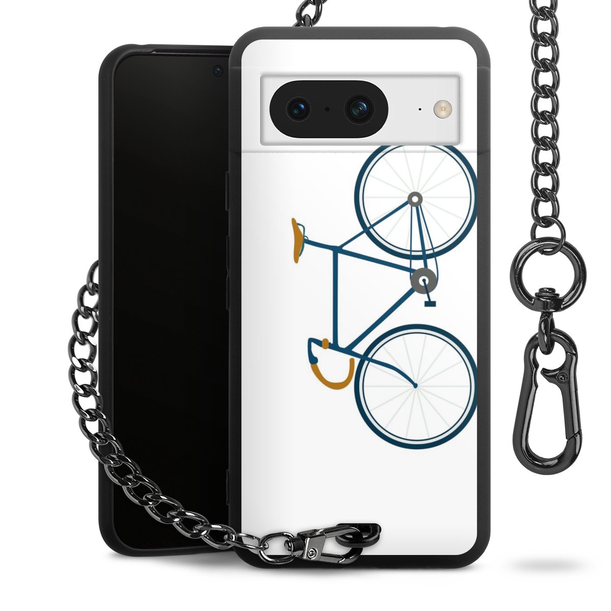 - Mattschwarze Handyhülle mit Metallkette