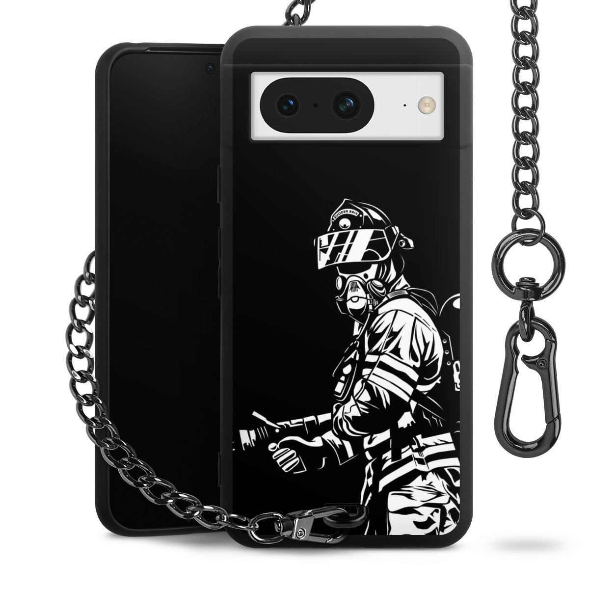 Die mattschwarze Silikon-Handyhülle besteht aus robustem TPU (thermoplastisches Polyurethan). Sie ist flexibel und schützt Dein Smartphone vor Stößen und Kratzern. Die Kette sowie der Karabinerhaken sind aus Metall in Gunmetal-Optik gefertigt. Für dieses Produkt kommen ausschließlich TÜV-geprüfte Materialien zum Einsatz.