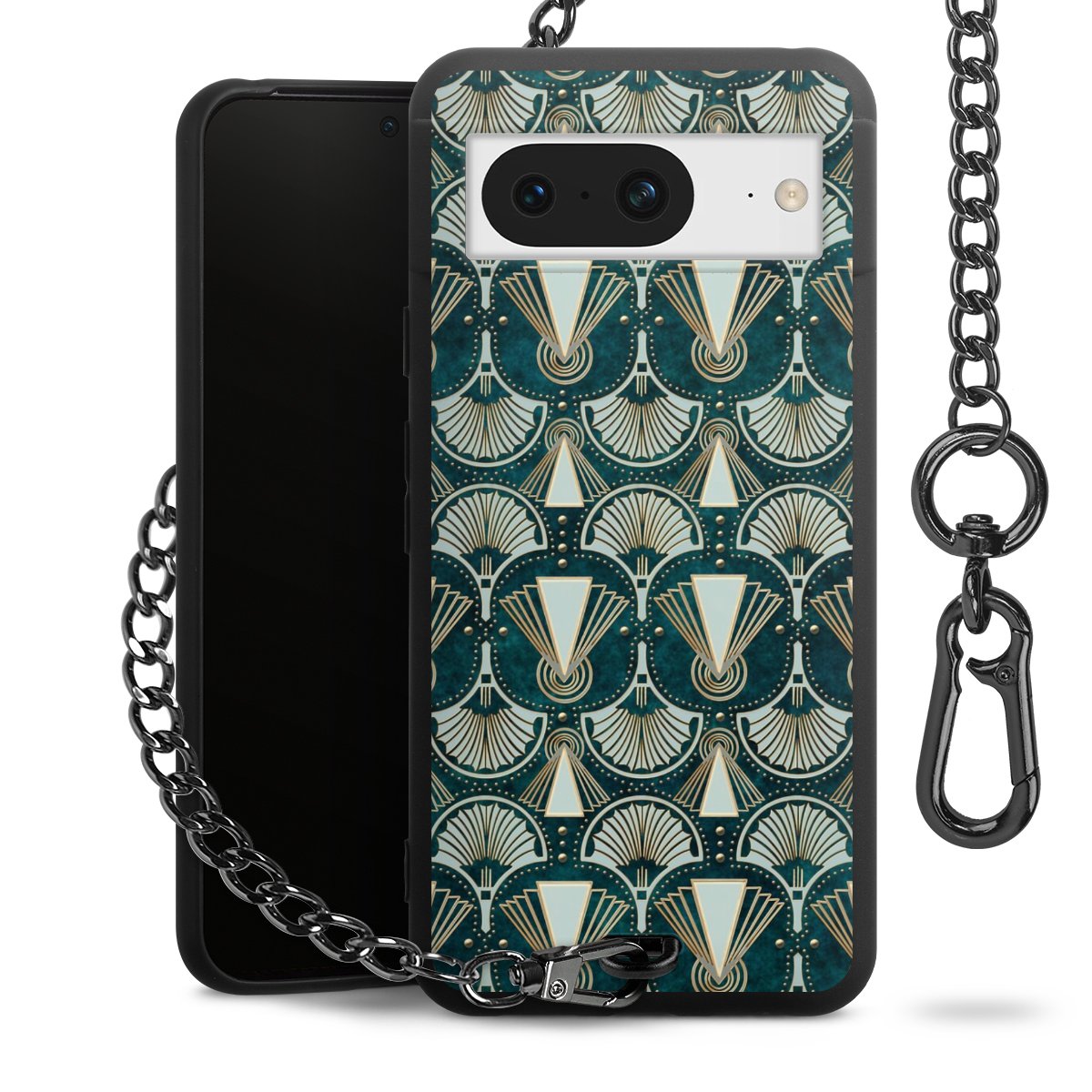 • Mattschwarze Handyhülle mit Metallkette