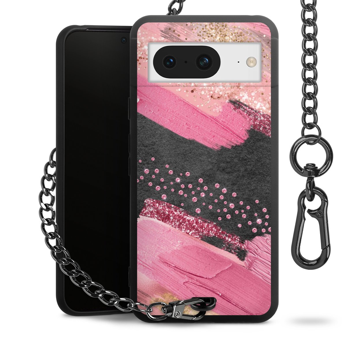 • Mattschwarze Handyhülle mit Metallkette