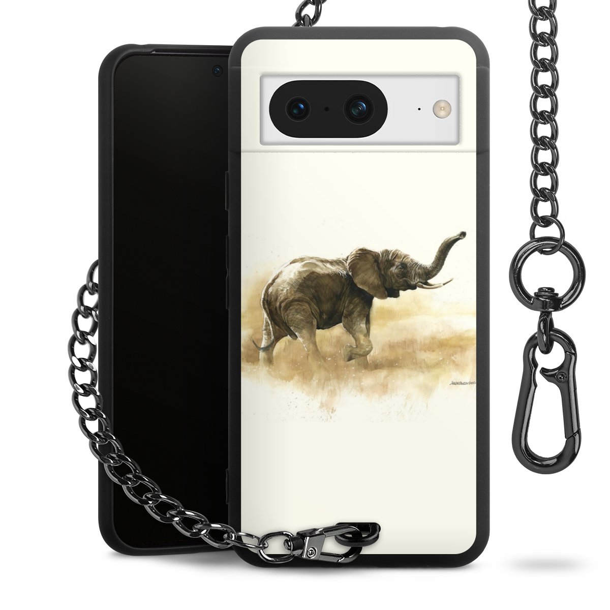 • Mattschwarze Handyhülle mit Metallkette